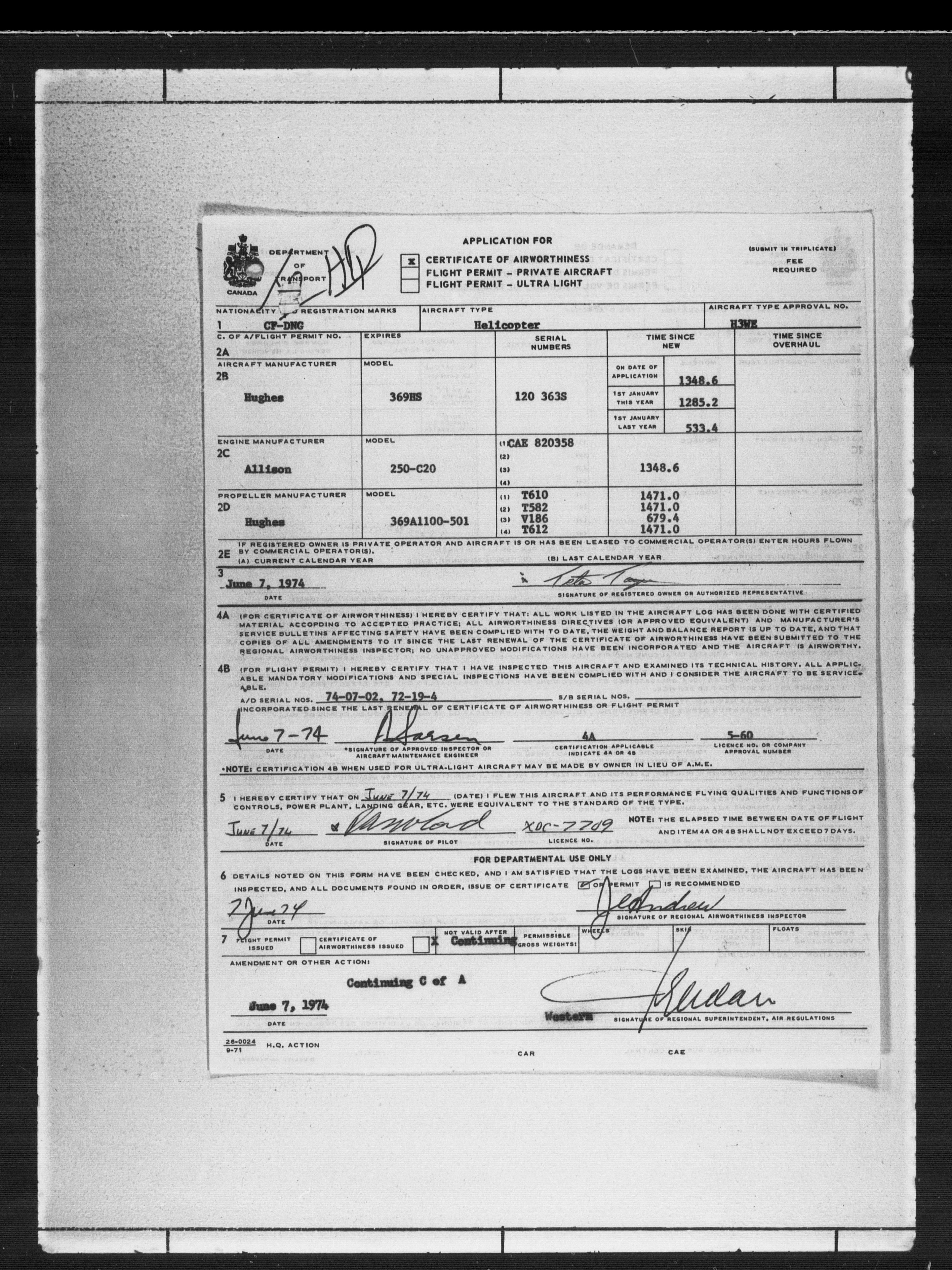 Department of Transport : Civil aircraft registration, inspection and operation files, block 5008, 1920-1986 - 7761