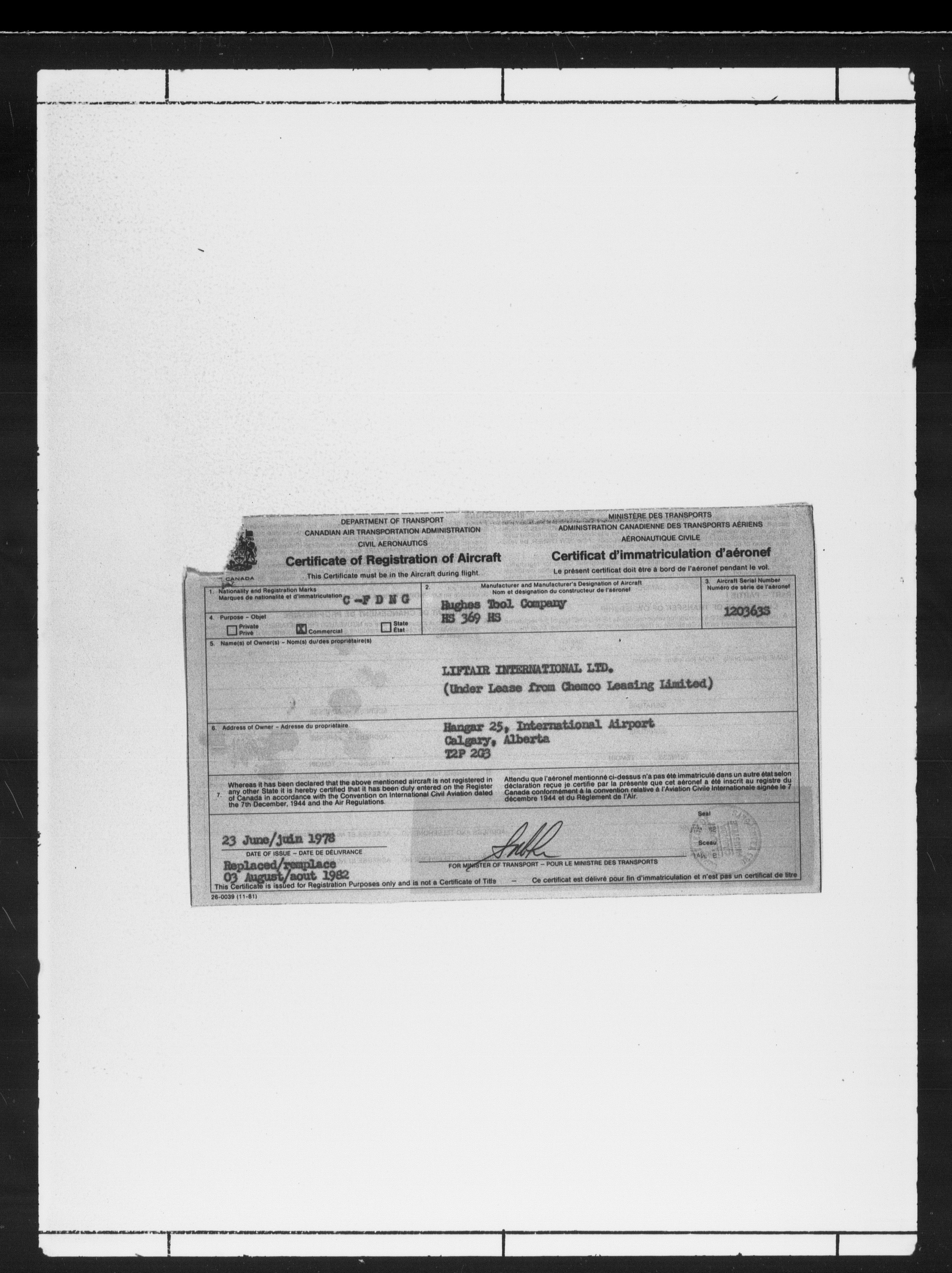 Department of Transport : Civil aircraft registration, inspection and operation files, block 5008, 1920-1986 - 7761