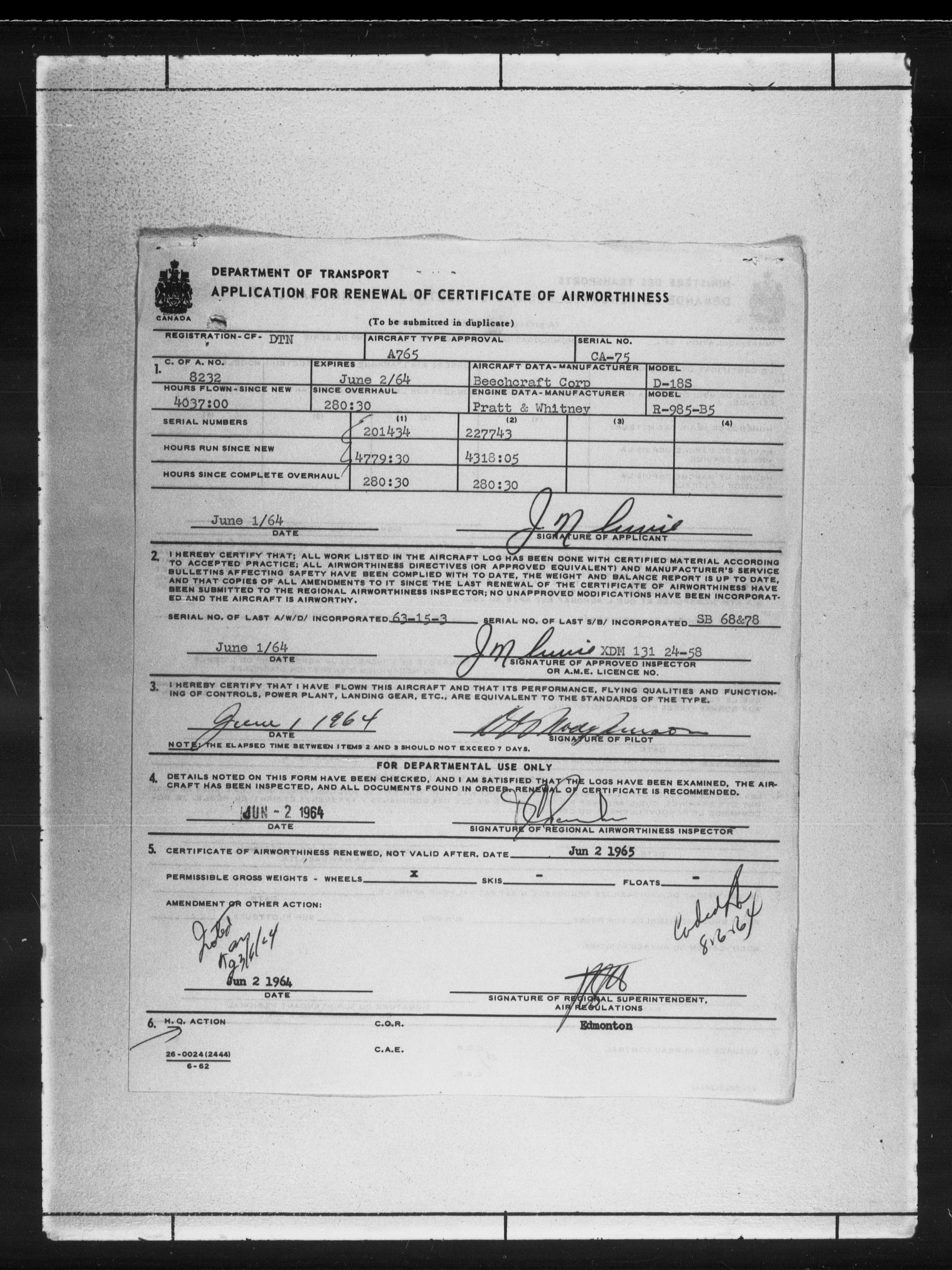 Department of Transport : Civil aircraft registration, inspection and operation files, block 5008, 1920-1986 - 7763