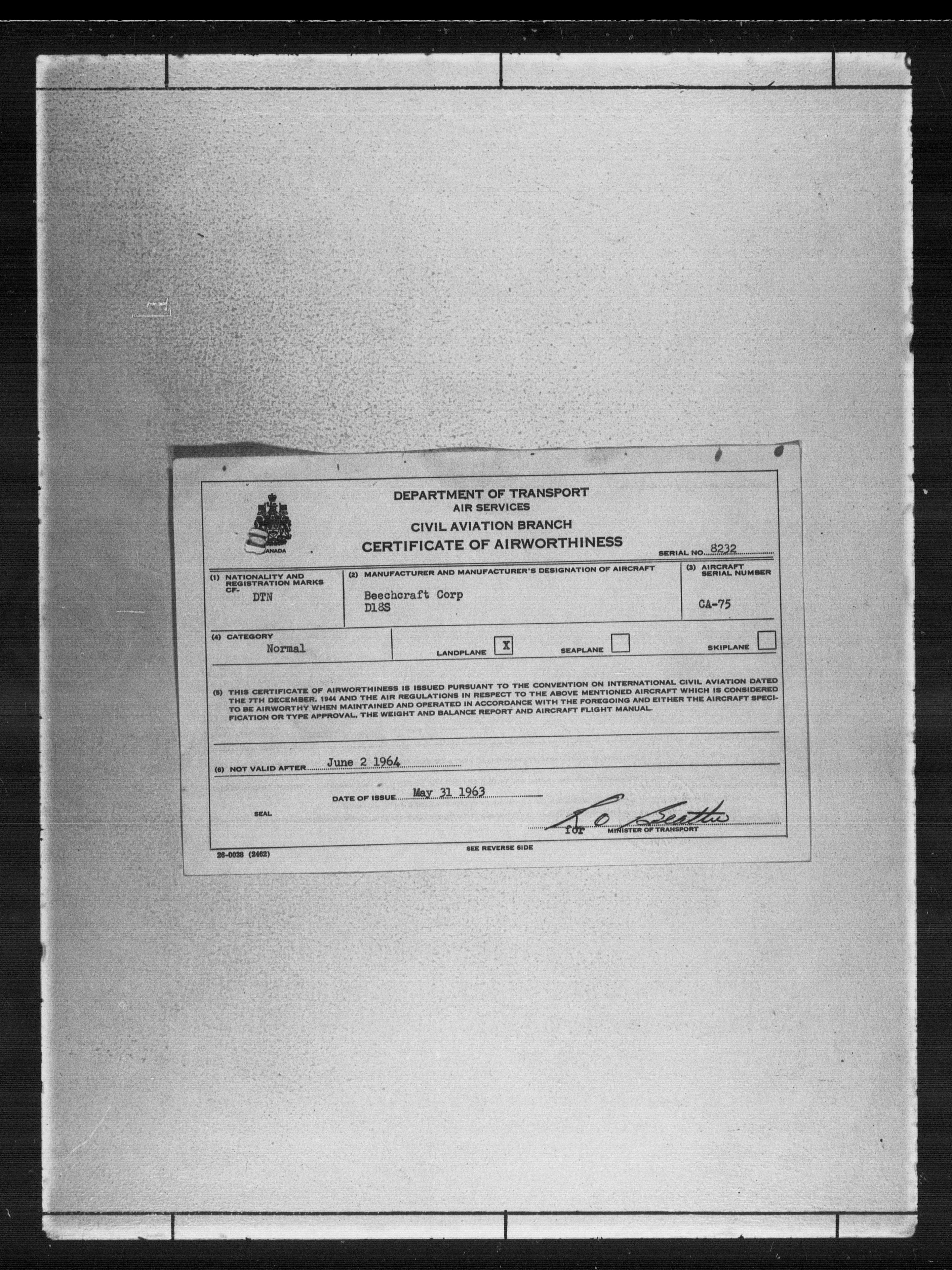 Department of Transport : Civil aircraft registration, inspection and operation files, block 5008, 1920-1986 - 7763