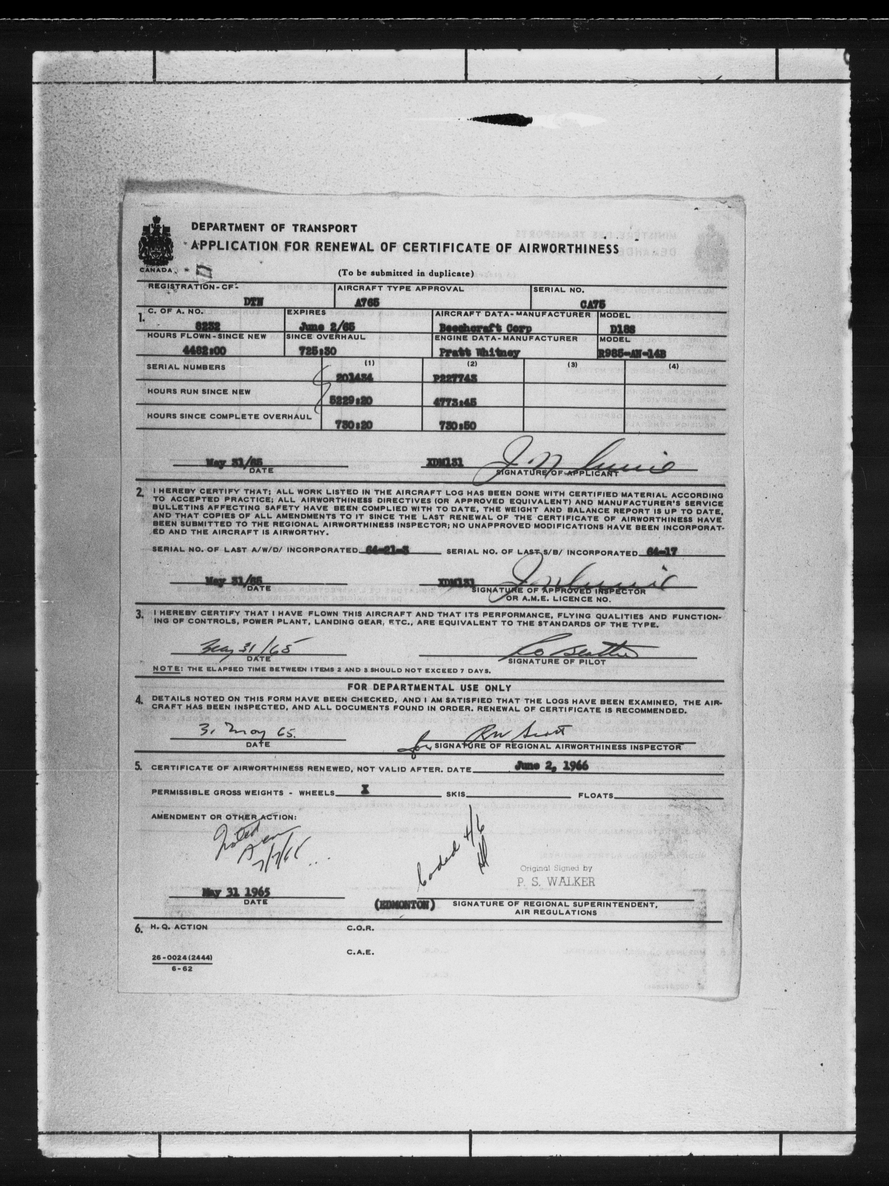 Department of Transport : Civil aircraft registration, inspection and operation files, block 5008, 1920-1986 - 7763