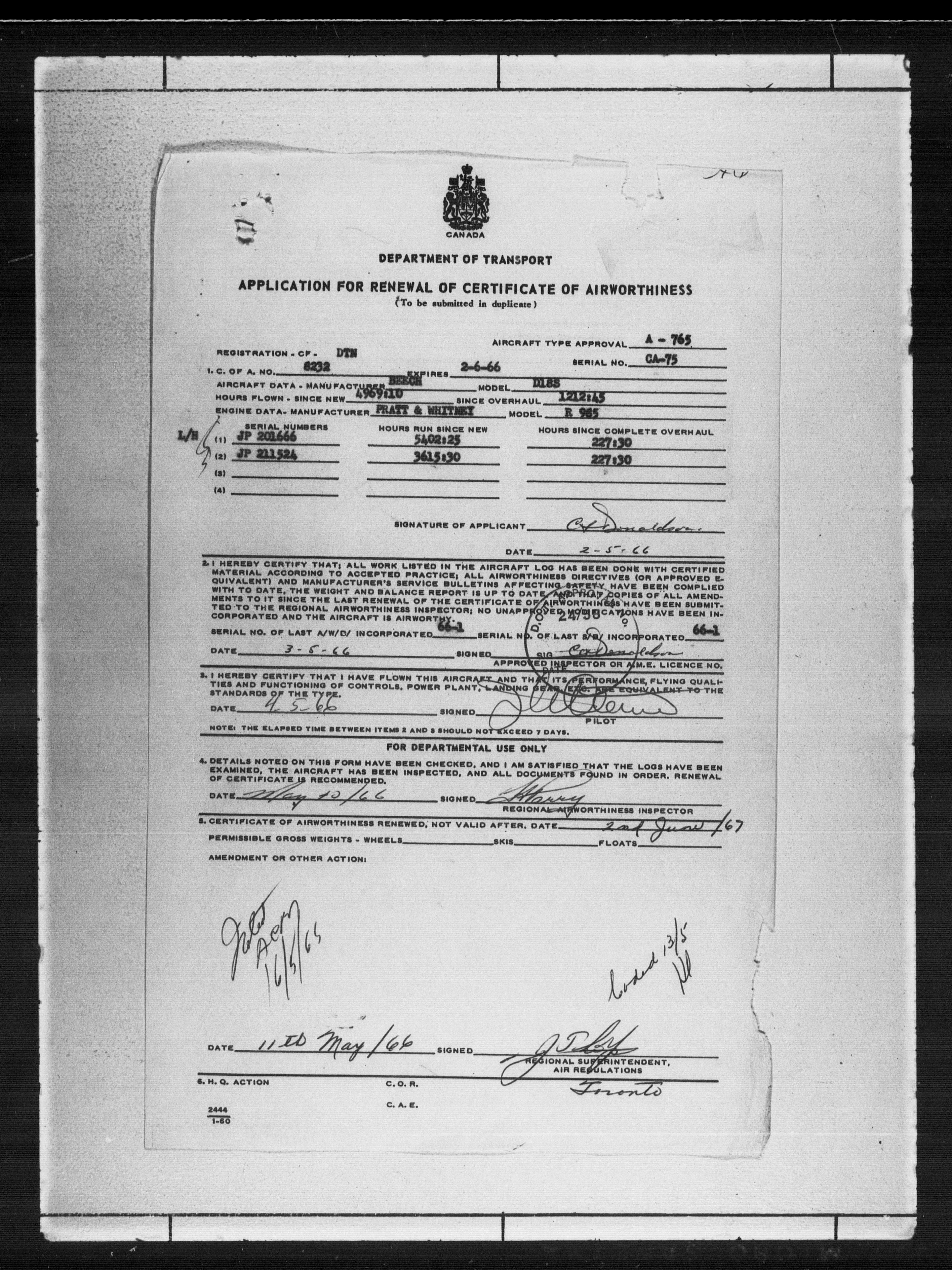 Department of Transport : Civil aircraft registration, inspection and operation files, block 5008, 1920-1986 - 7763