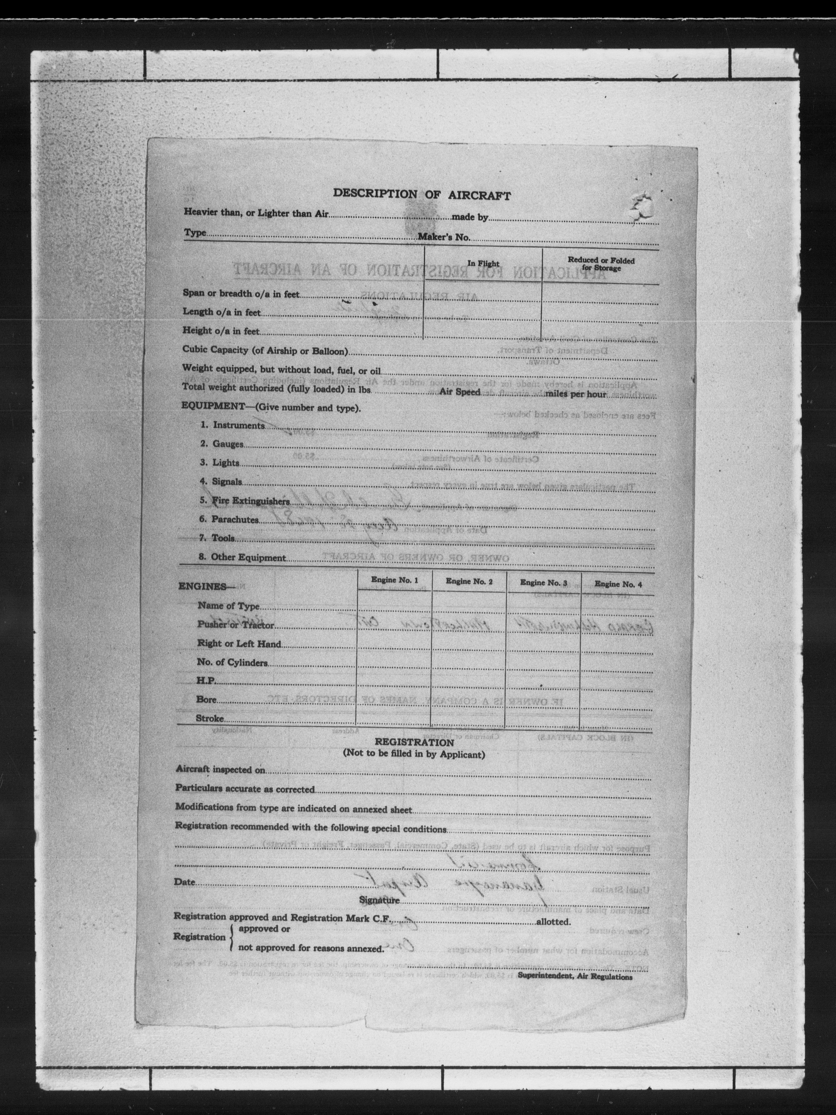 Department of Transport : Civil aircraft registration, inspection and operation files, block 5008, 1920-1986 - 7764