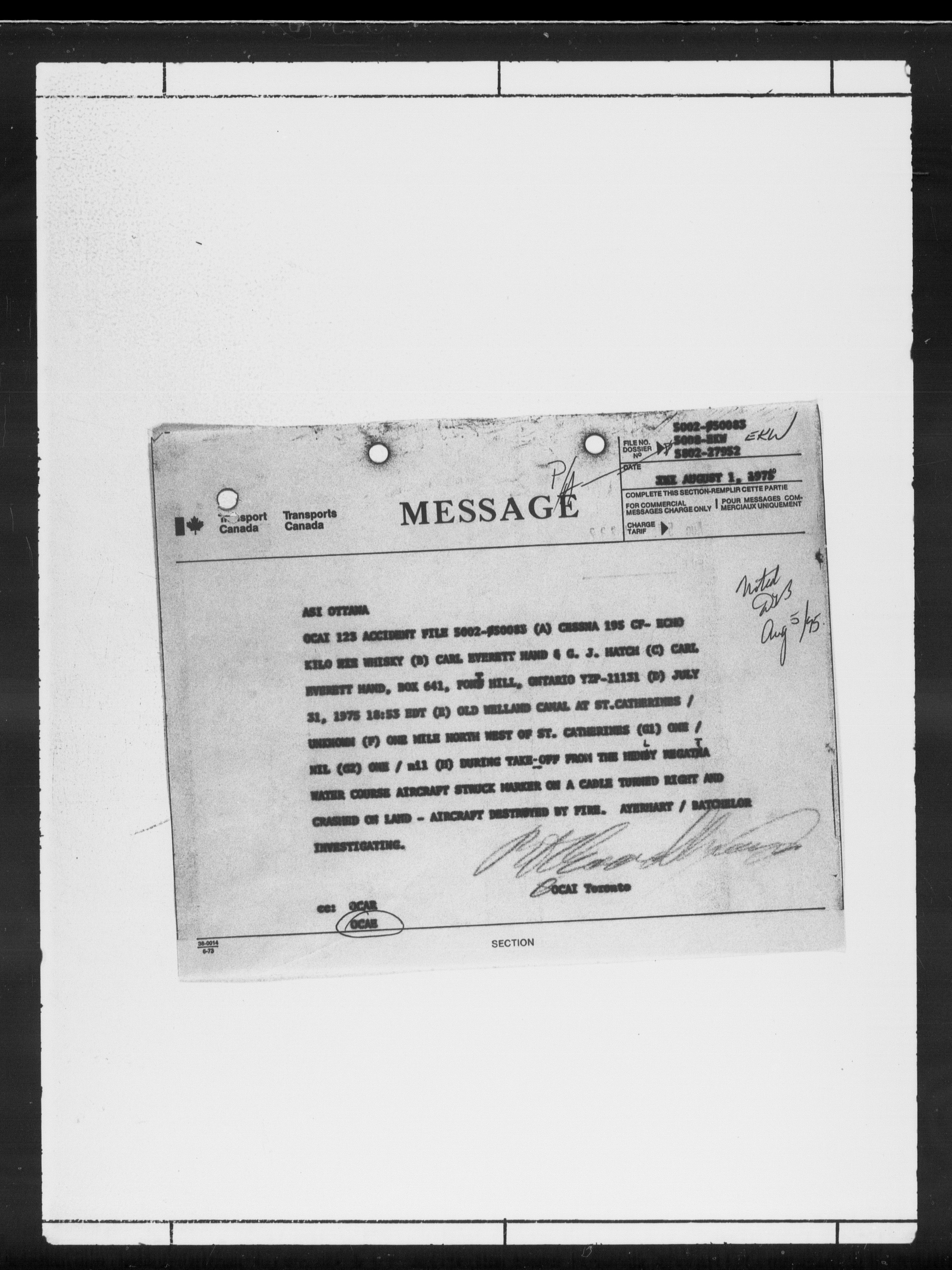 Department of Transport : Civil aircraft registration, inspection and operation files, block 5008, 1920-1986 - 7765
