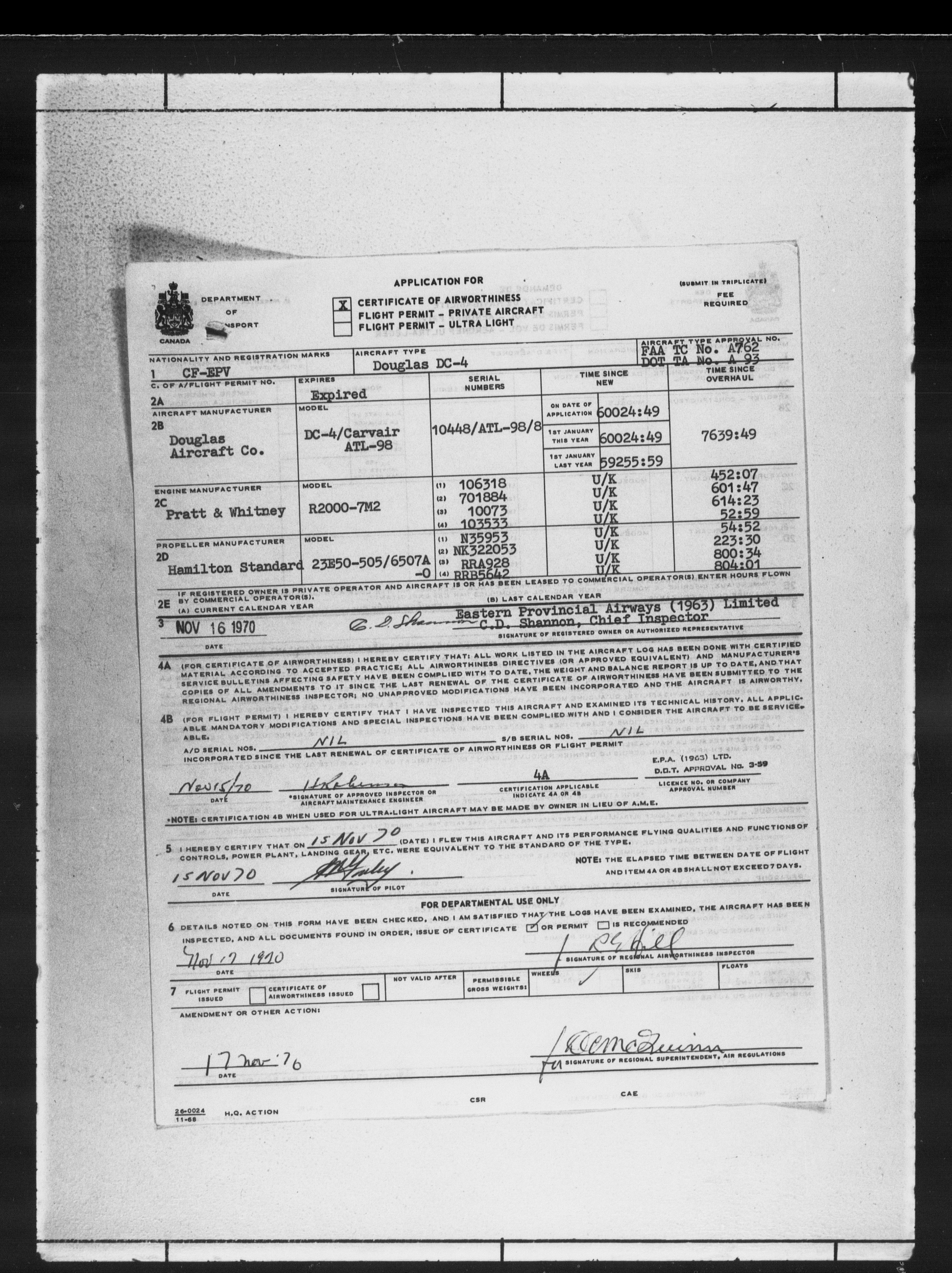 Department of Transport : Civil aircraft registration, inspection and operation files, block 5008, 1920-1986 - 7766