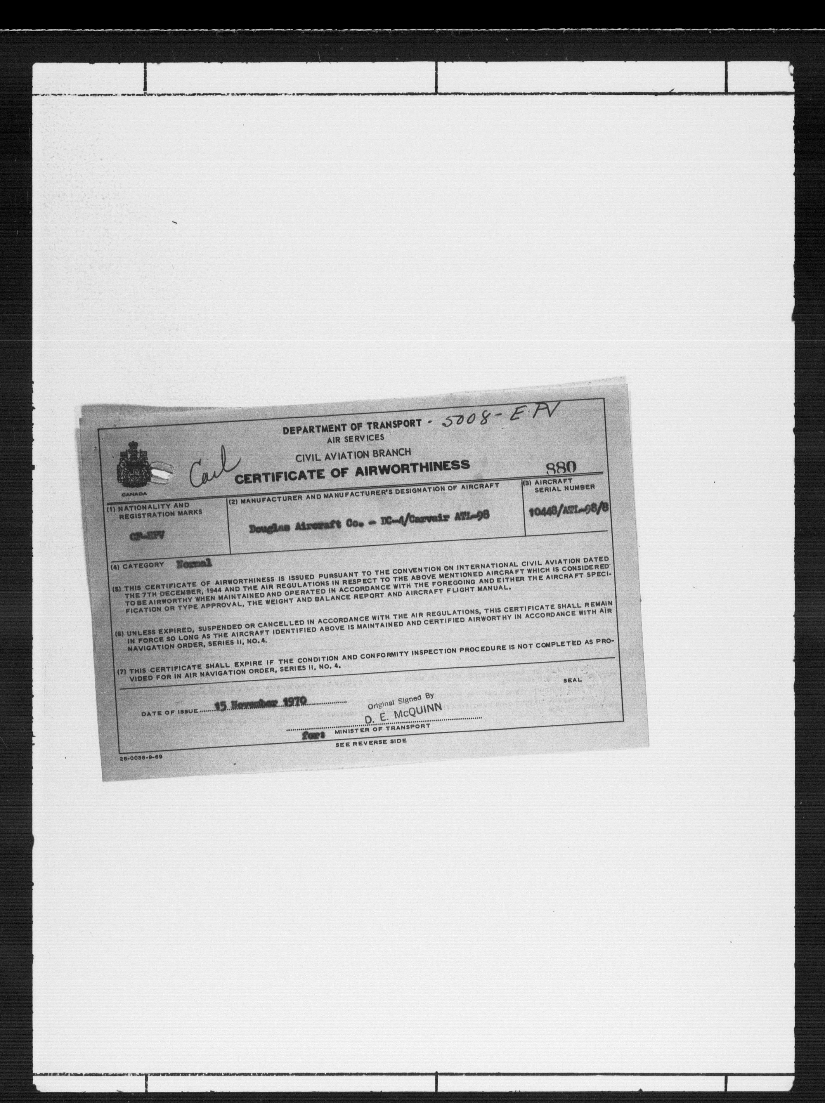 Department of Transport : Civil aircraft registration, inspection and operation files, block 5008, 1920-1986 - 7766