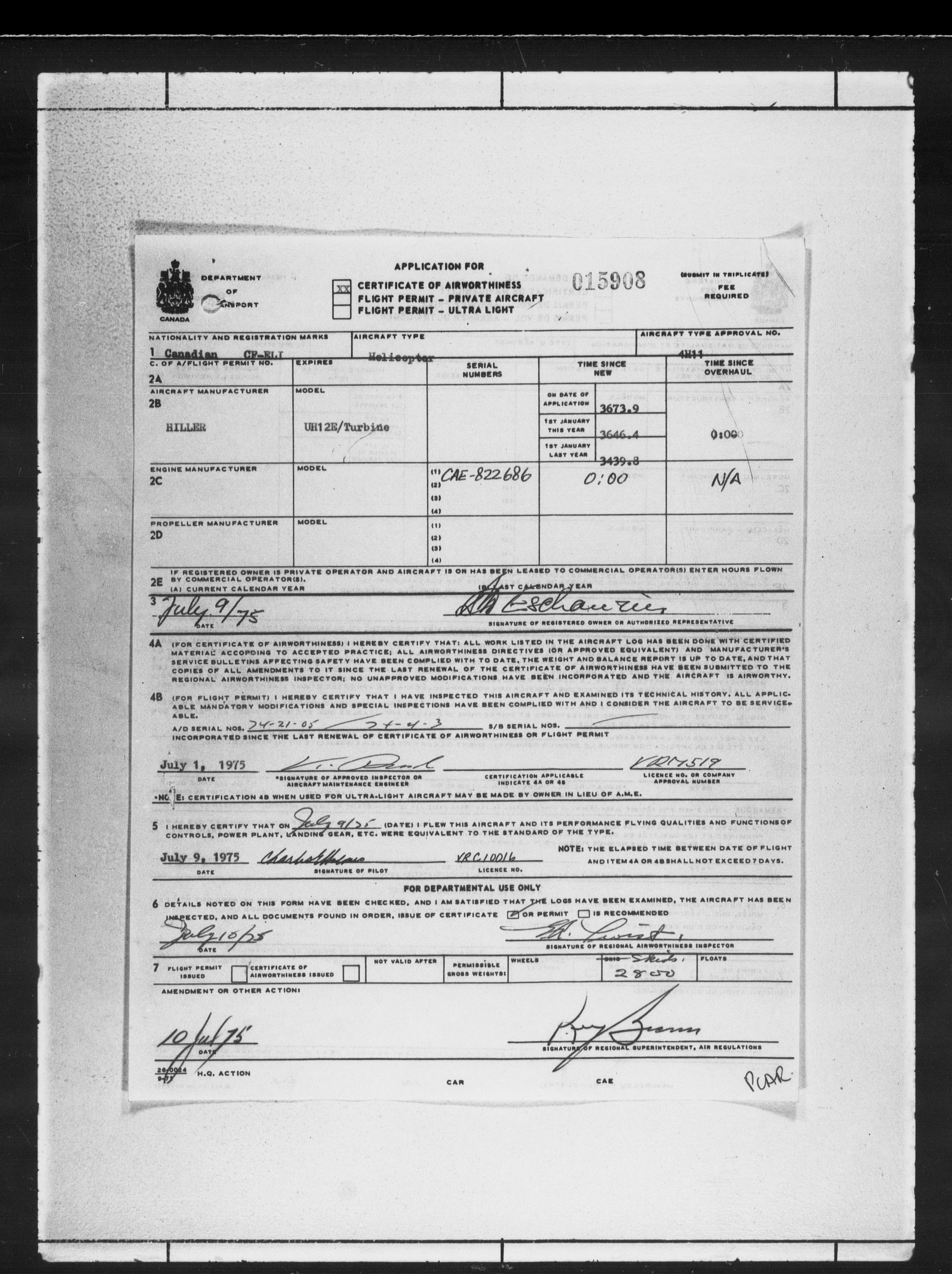 Department of Transport : Civil aircraft registration, inspection and operation files, block 5008, 1920-1986 - 7766