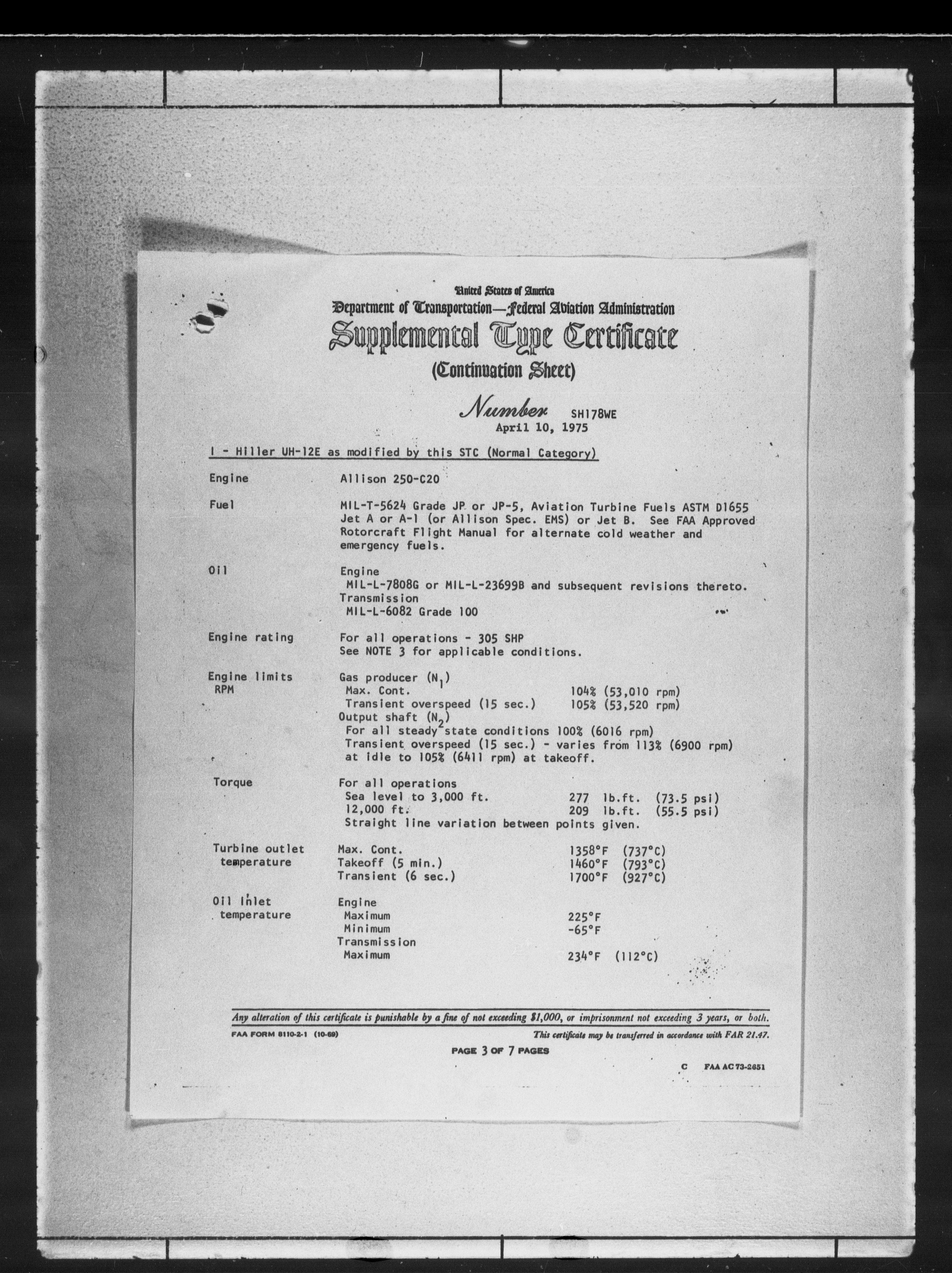 Department of Transport : Civil aircraft registration, inspection and operation files, block 5008, 1920-1986 - 7766