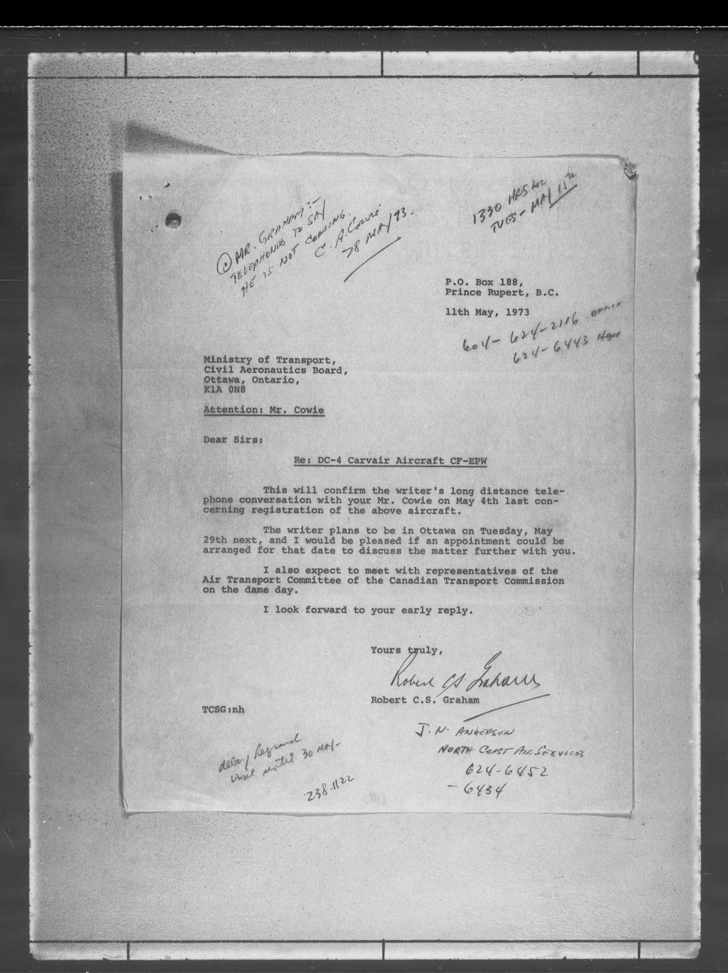 Department of Transport : Civil aircraft registration, inspection and operation files, block 5008, 1920-1986 - 7767