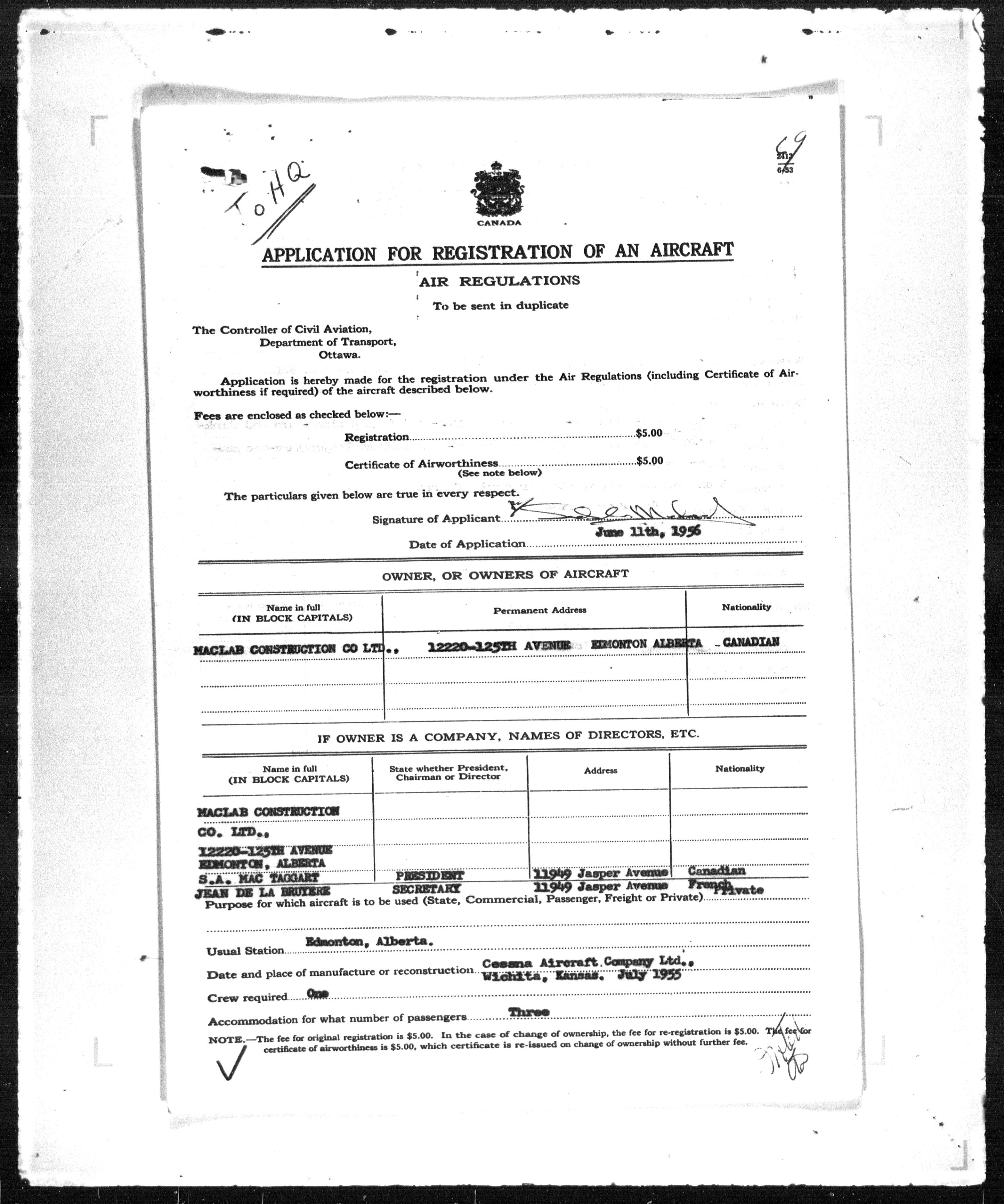 Department of Transport : Civil aircraft registration, inspection and operation files, block 5008, 1920-1986 - 7768