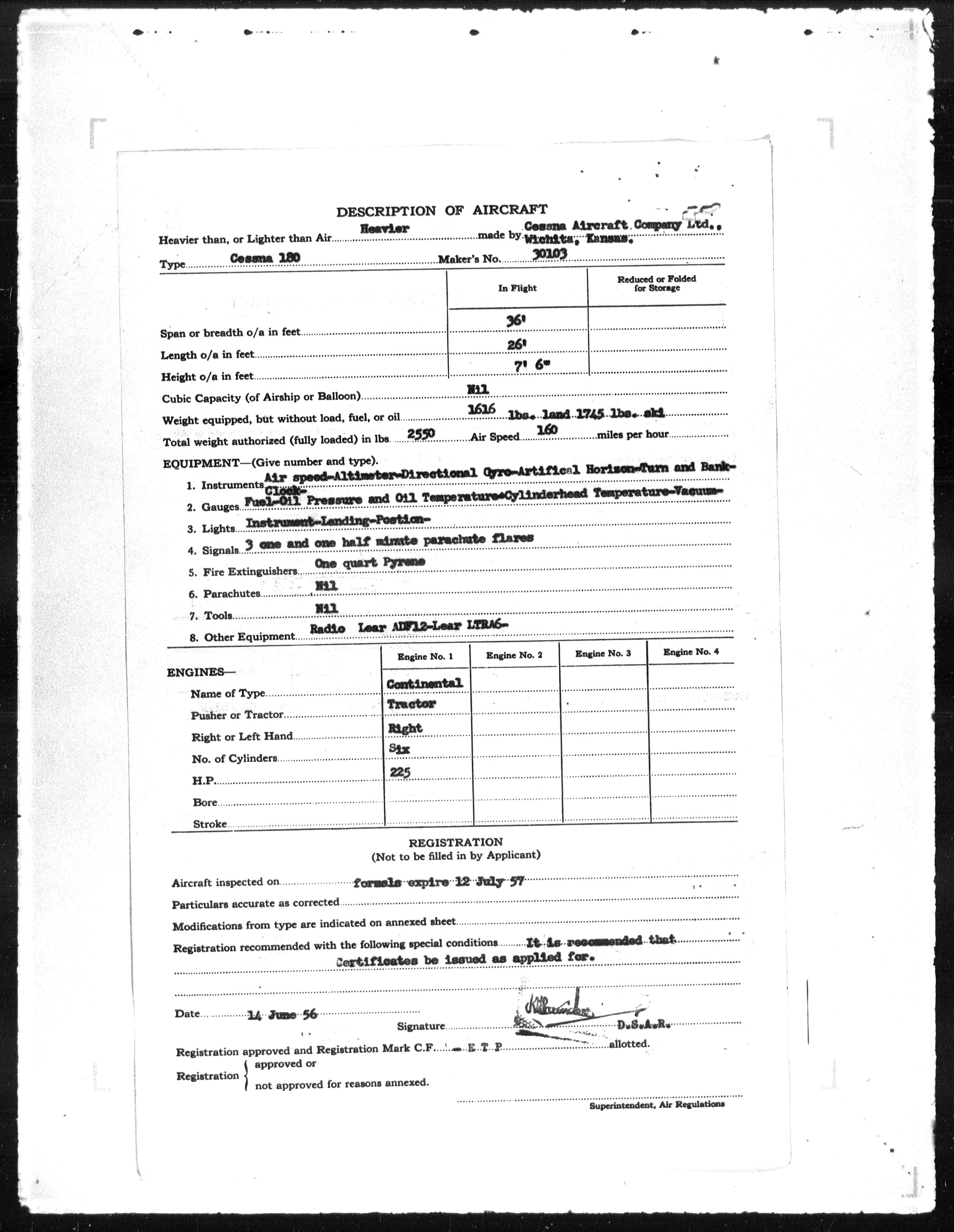 Department of Transport : Civil aircraft registration, inspection and operation files, block 5008, 1920-1986 - 7768