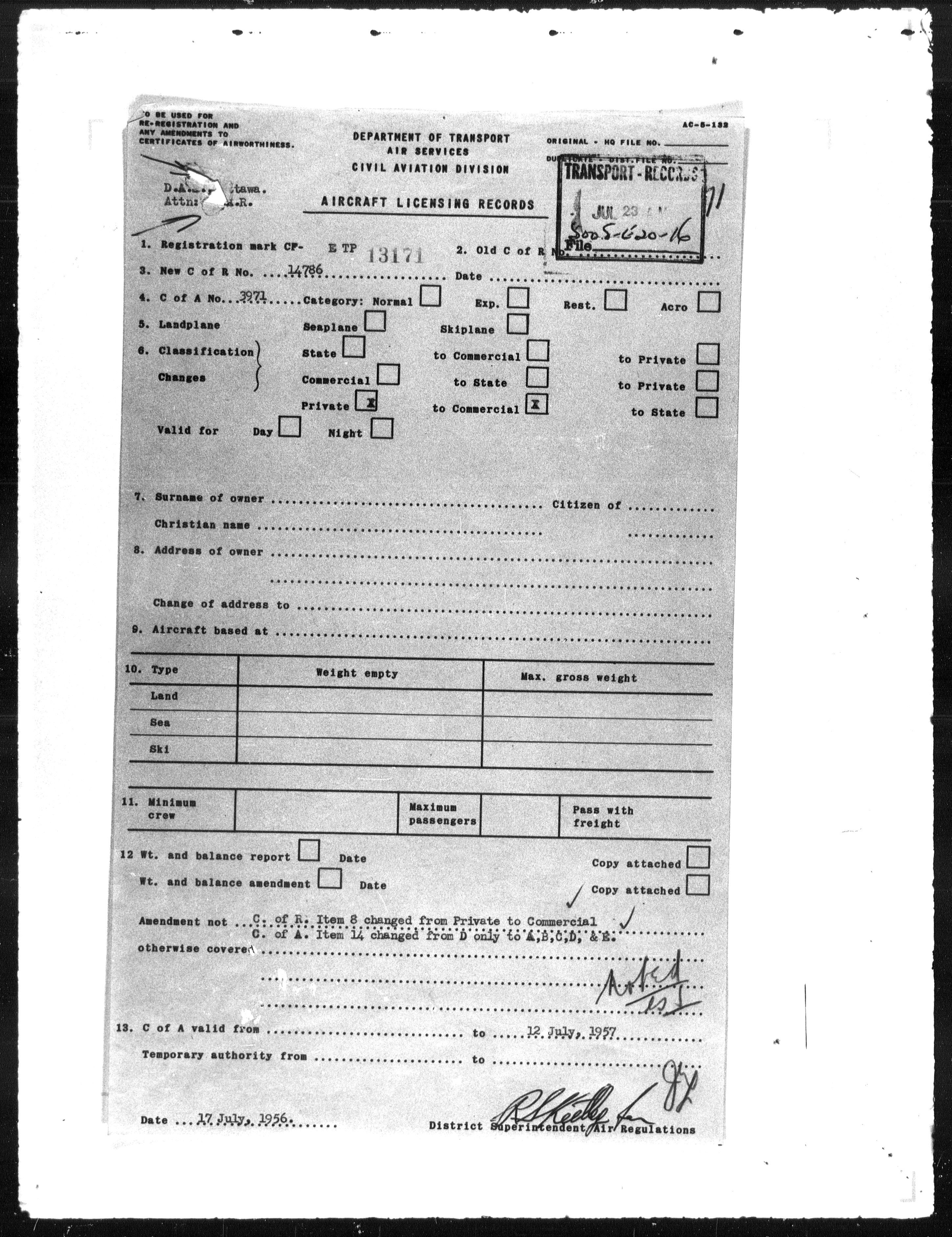 Department of Transport : Civil aircraft registration, inspection and operation files, block 5008, 1920-1986 - 7768