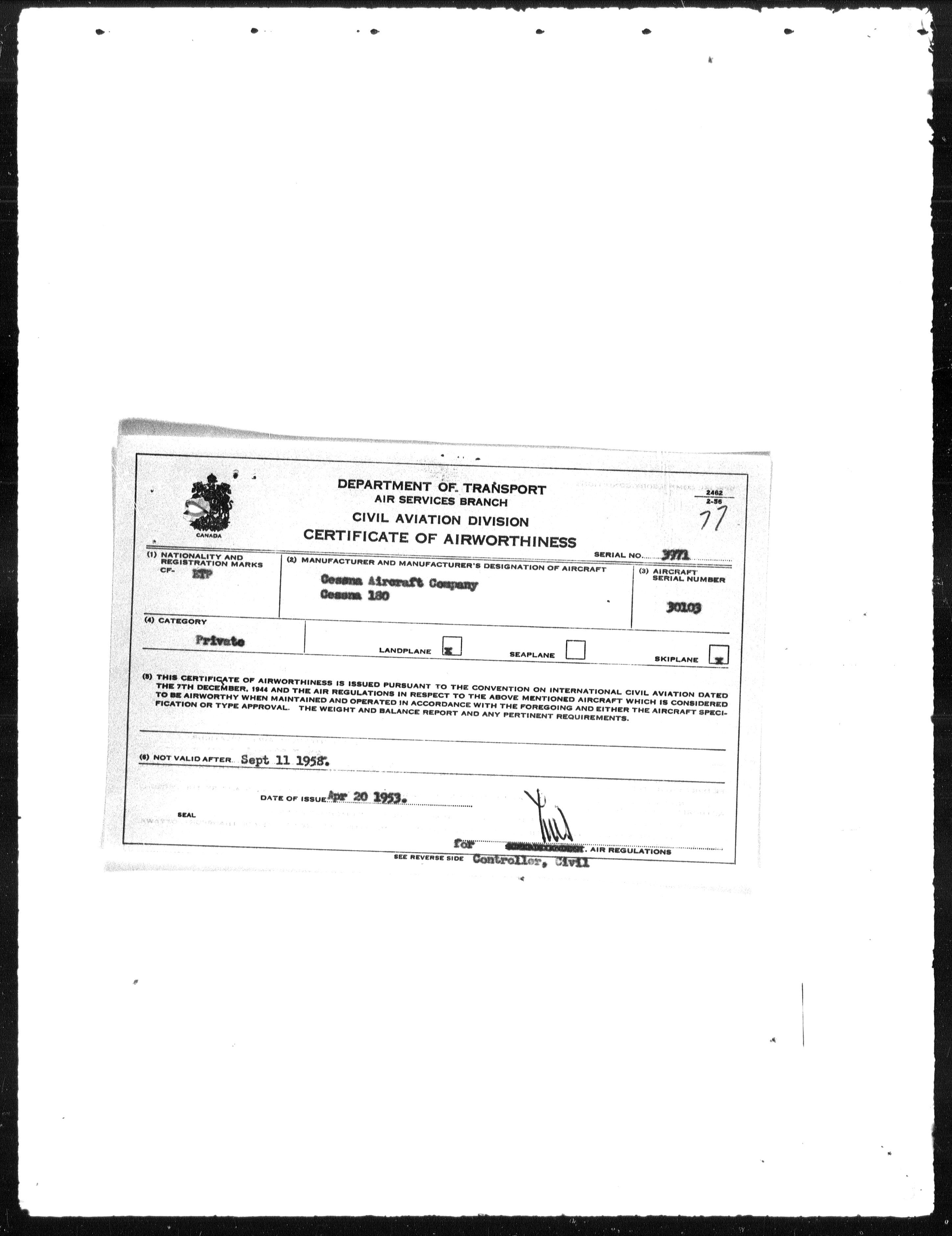 Department of Transport : Civil aircraft registration, inspection and operation files, block 5008, 1920-1986 - 7768