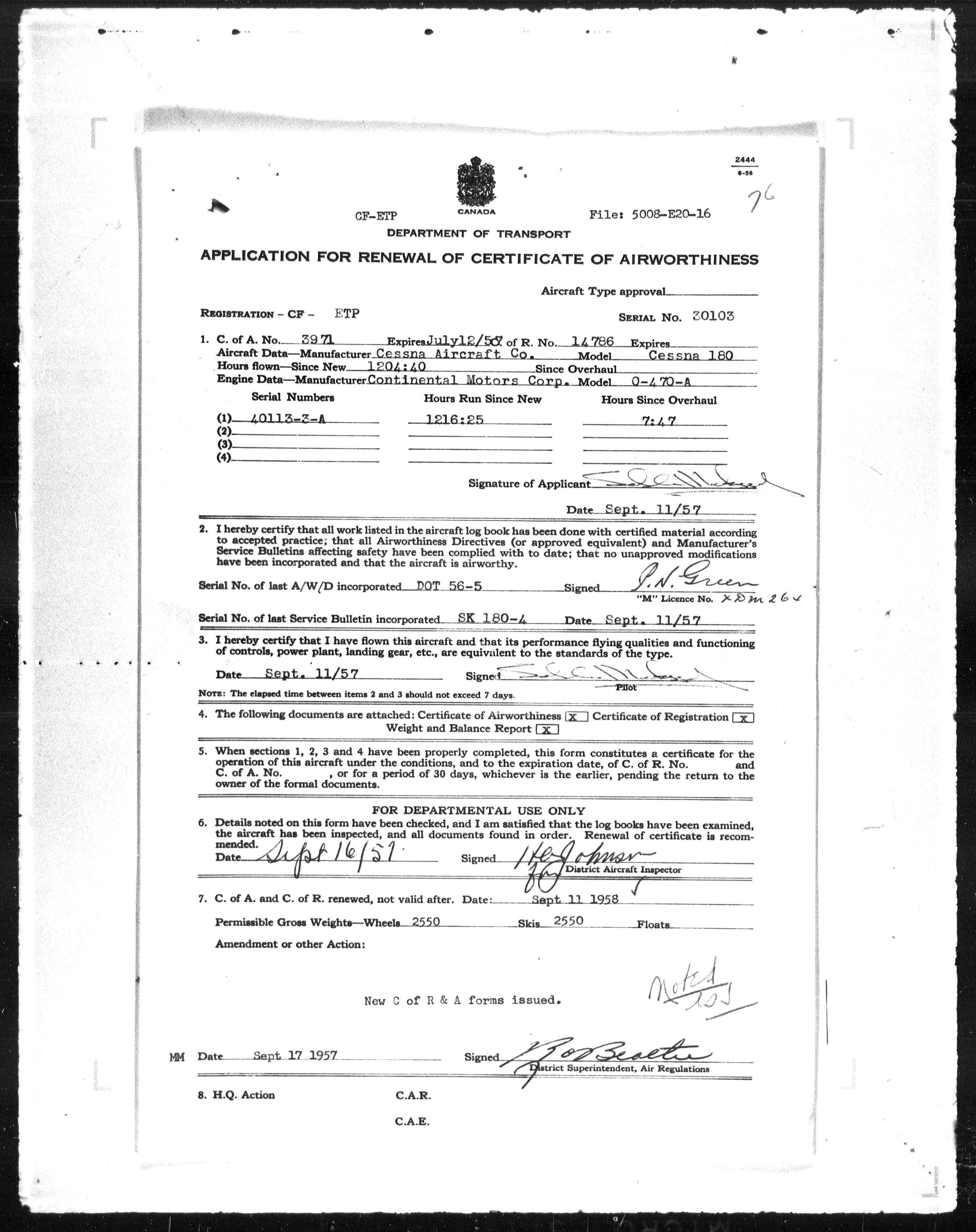 Department of Transport : Civil aircraft registration, inspection and operation files, block 5008, 1920-1986 - 7768