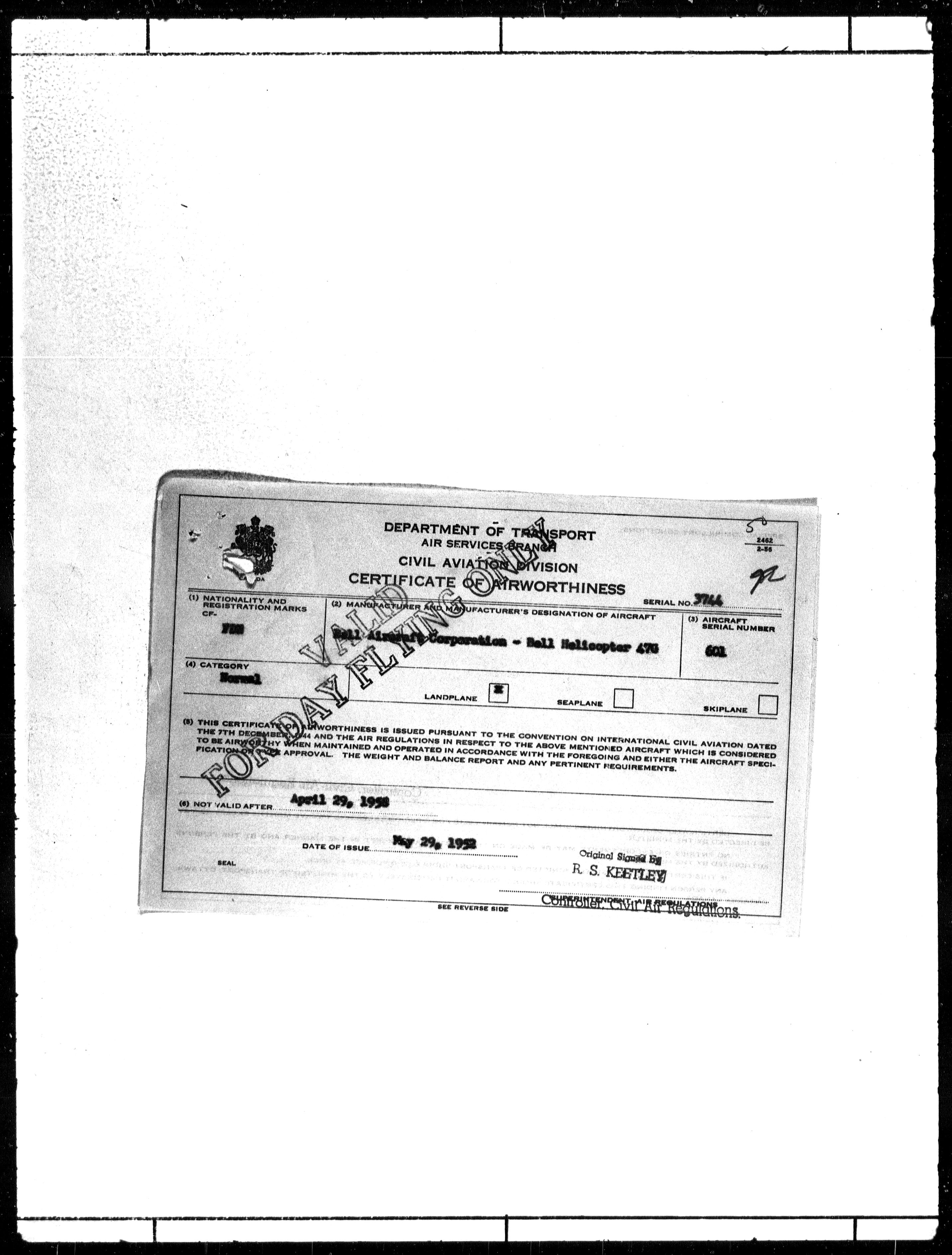 Department of Transport : Civil aircraft registration, inspection and operation files, block 5008, 1920-1986 - 7769