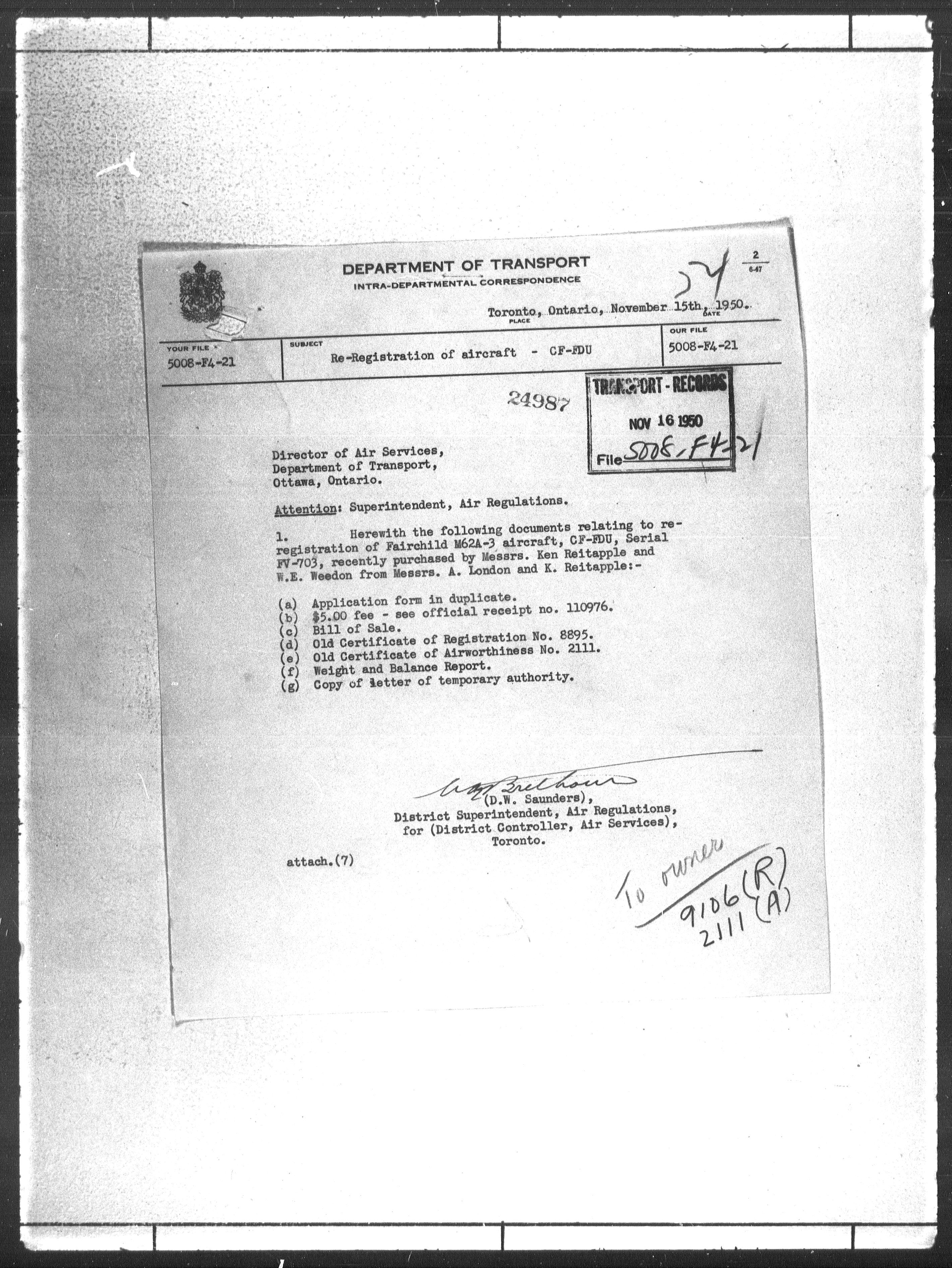 Department of Transport : Civil aircraft registration, inspection and operation files, block 5008, 1920-1986 - 7770