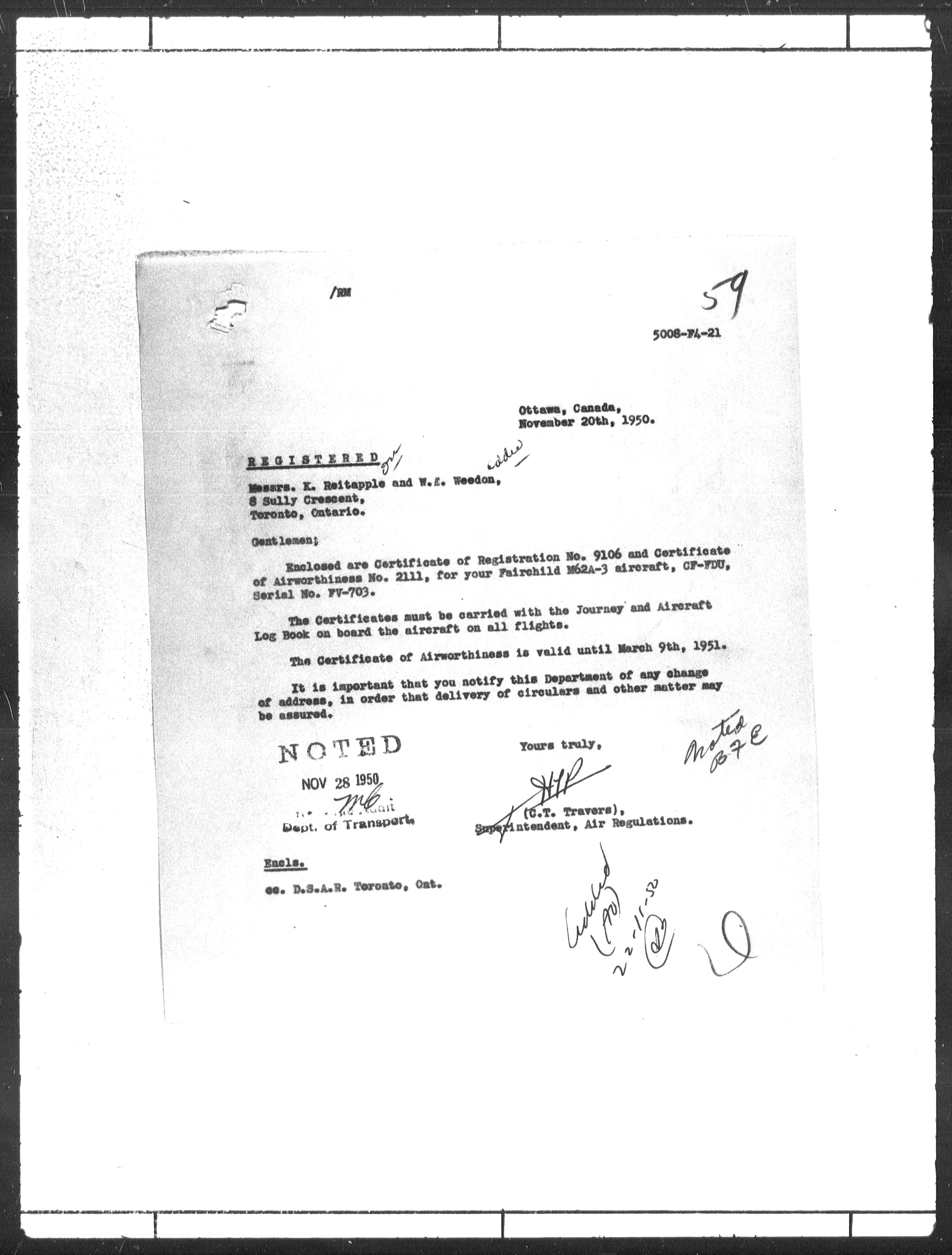 Department of Transport : Civil aircraft registration, inspection and operation files, block 5008, 1920-1986 - 7770