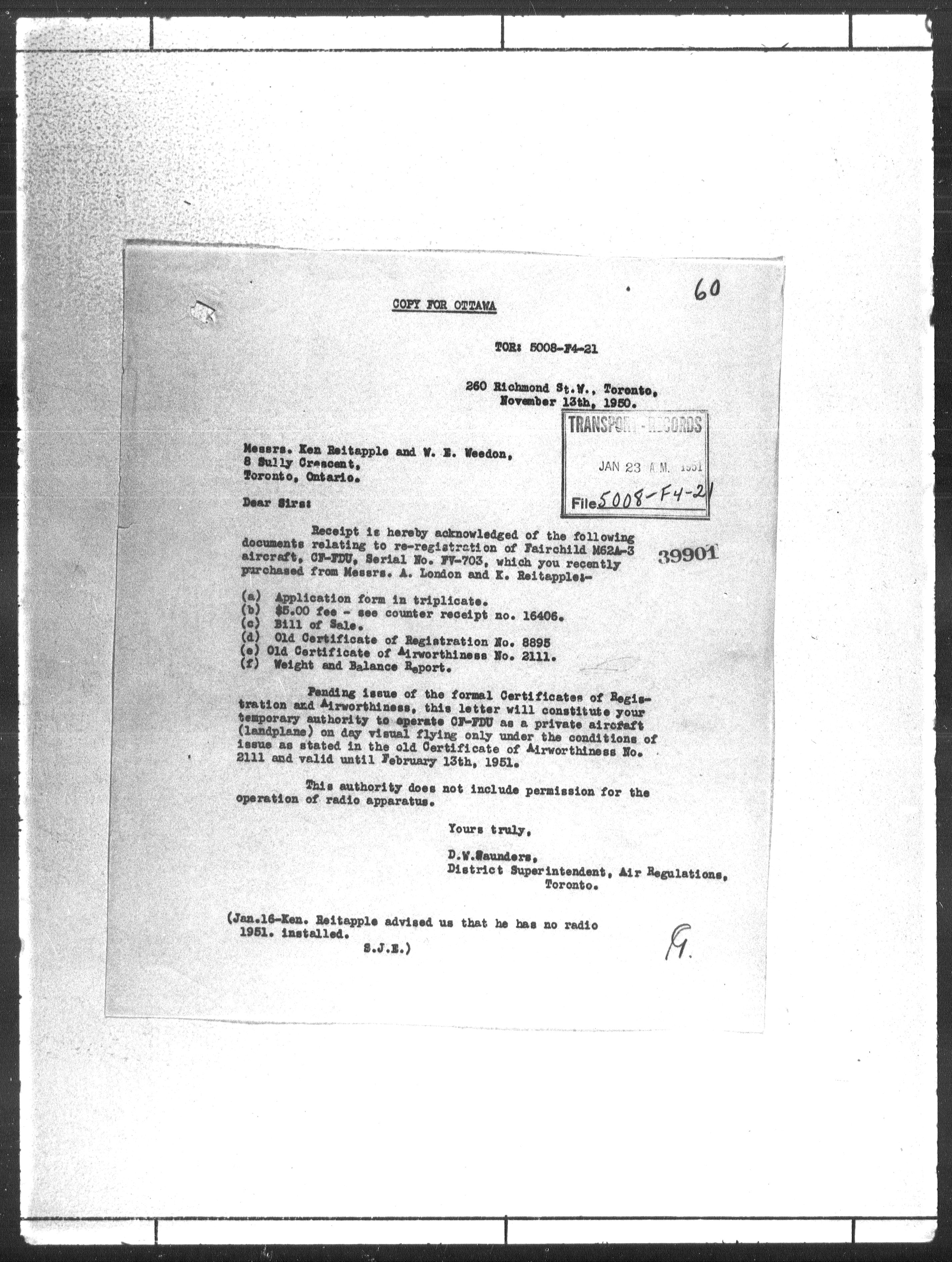 Department of Transport : Civil aircraft registration, inspection and operation files, block 5008, 1920-1986 - 7770
