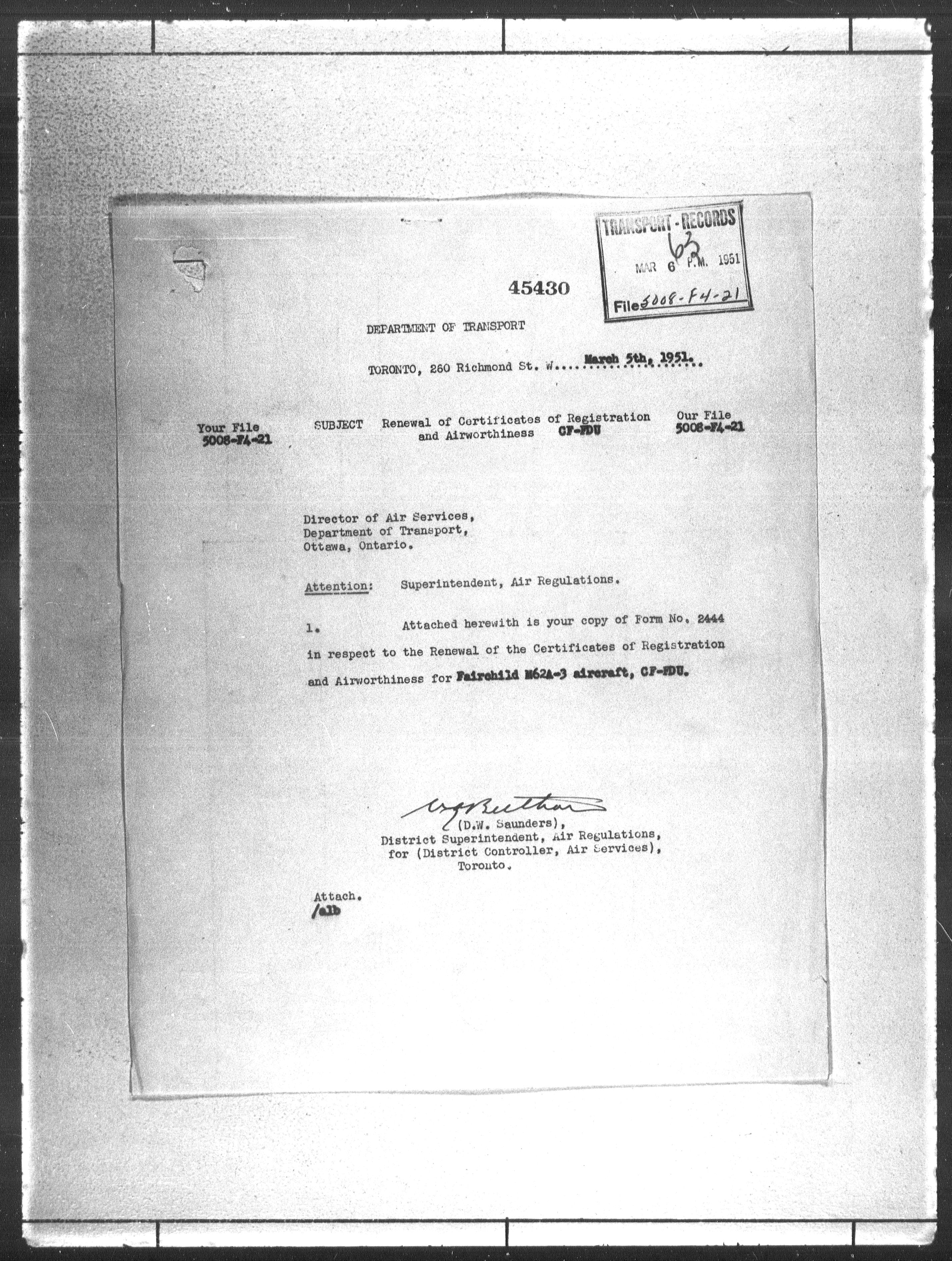 Department of Transport : Civil aircraft registration, inspection and operation files, block 5008, 1920-1986 - 7770