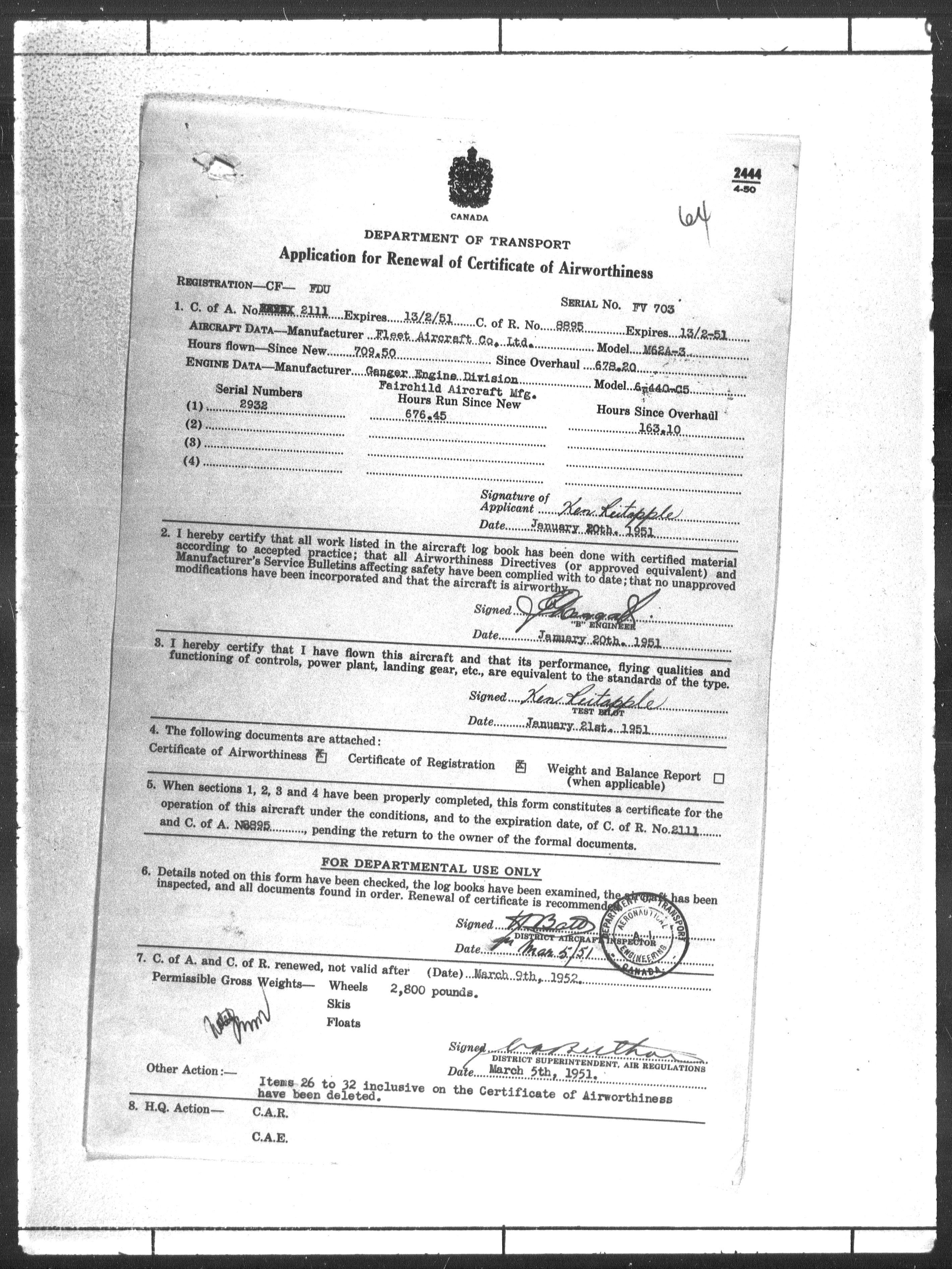 Department of Transport : Civil aircraft registration, inspection and operation files, block 5008, 1920-1986 - 7770