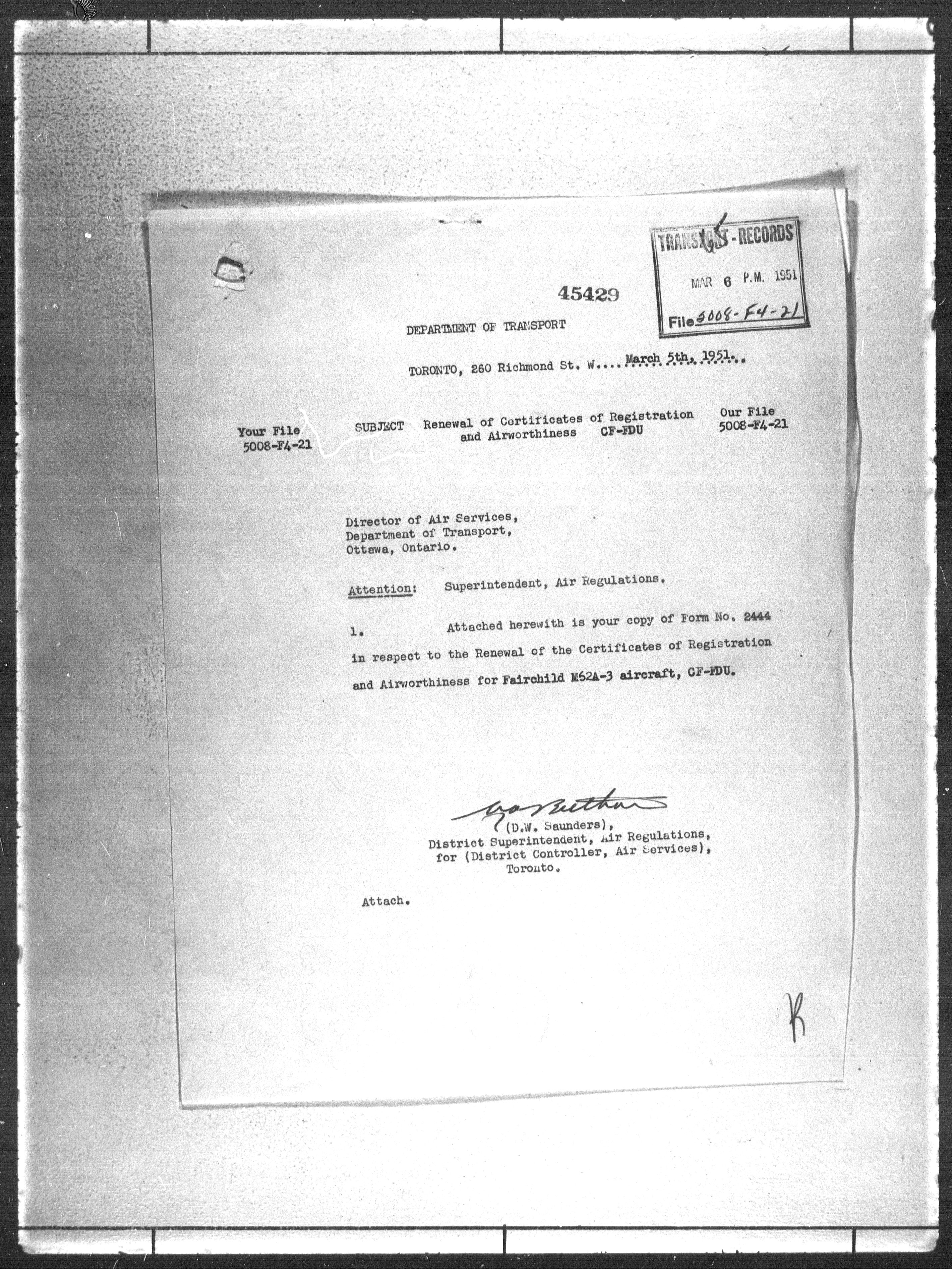 Department of Transport : Civil aircraft registration, inspection and operation files, block 5008, 1920-1986 - 7770