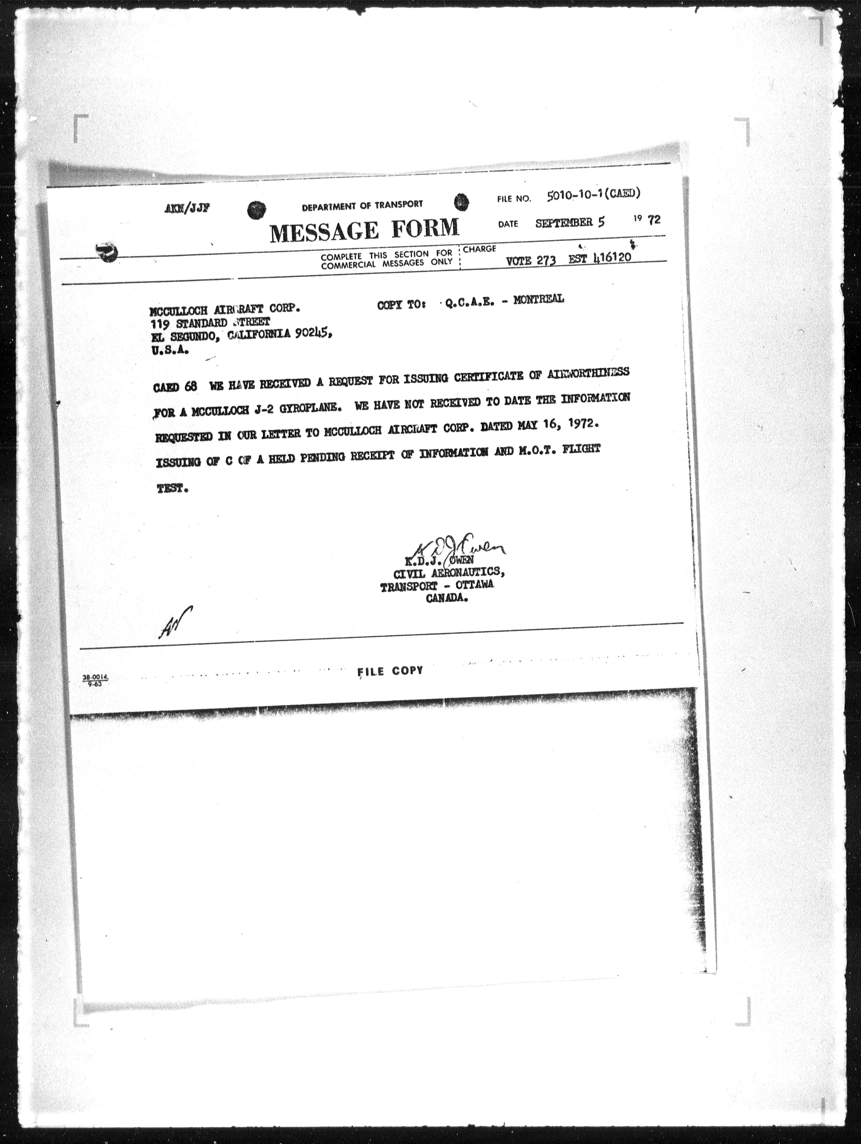 Department of Transport : Civil aircraft registration, inspection and operation files, block 5008, 1920-1986 - 7772