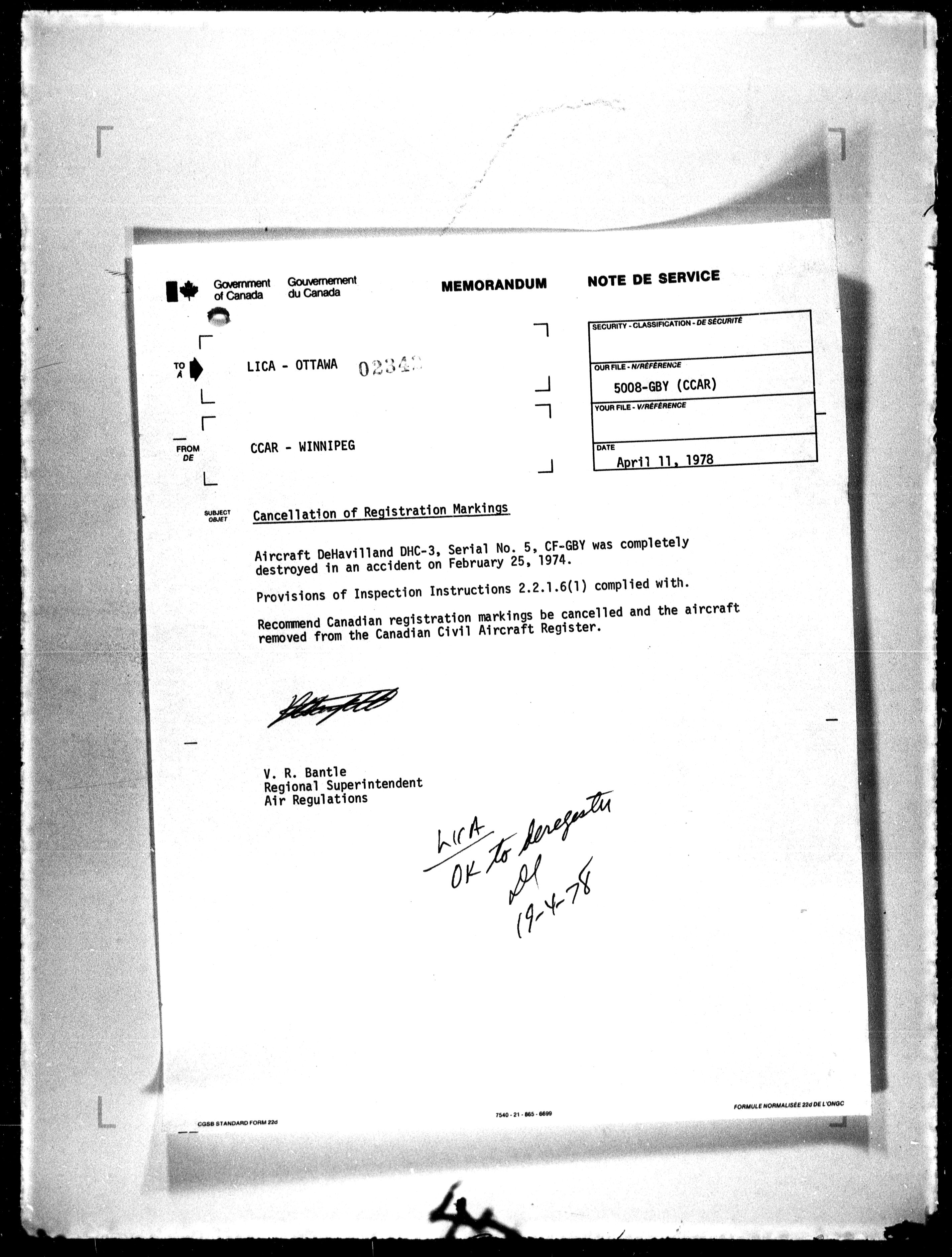 Department of Transport : Civil aircraft registration, inspection and operation files, block 5008, 1920-1986 - 7773