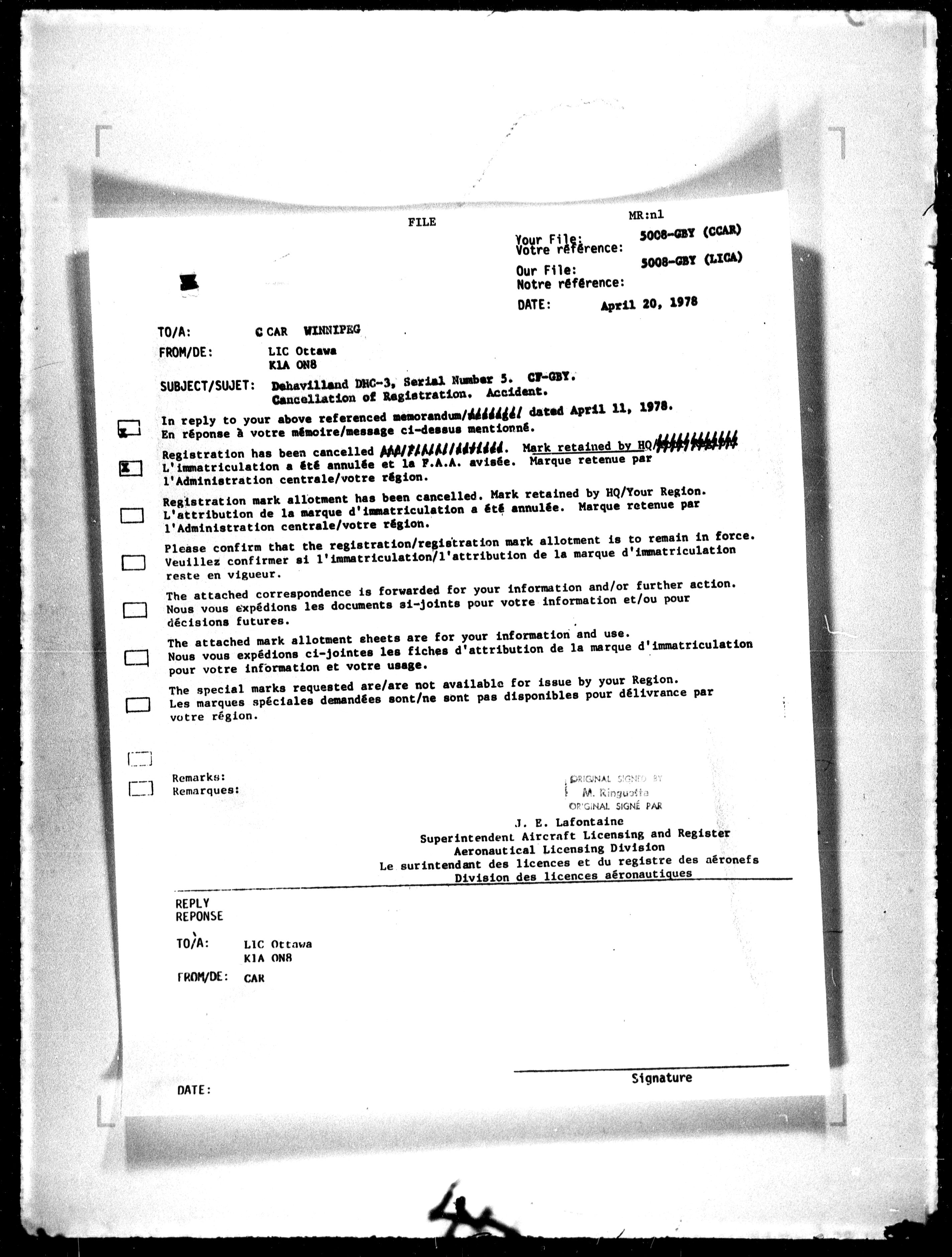 Department of Transport : Civil aircraft registration, inspection and operation files, block 5008, 1920-1986 - 7773