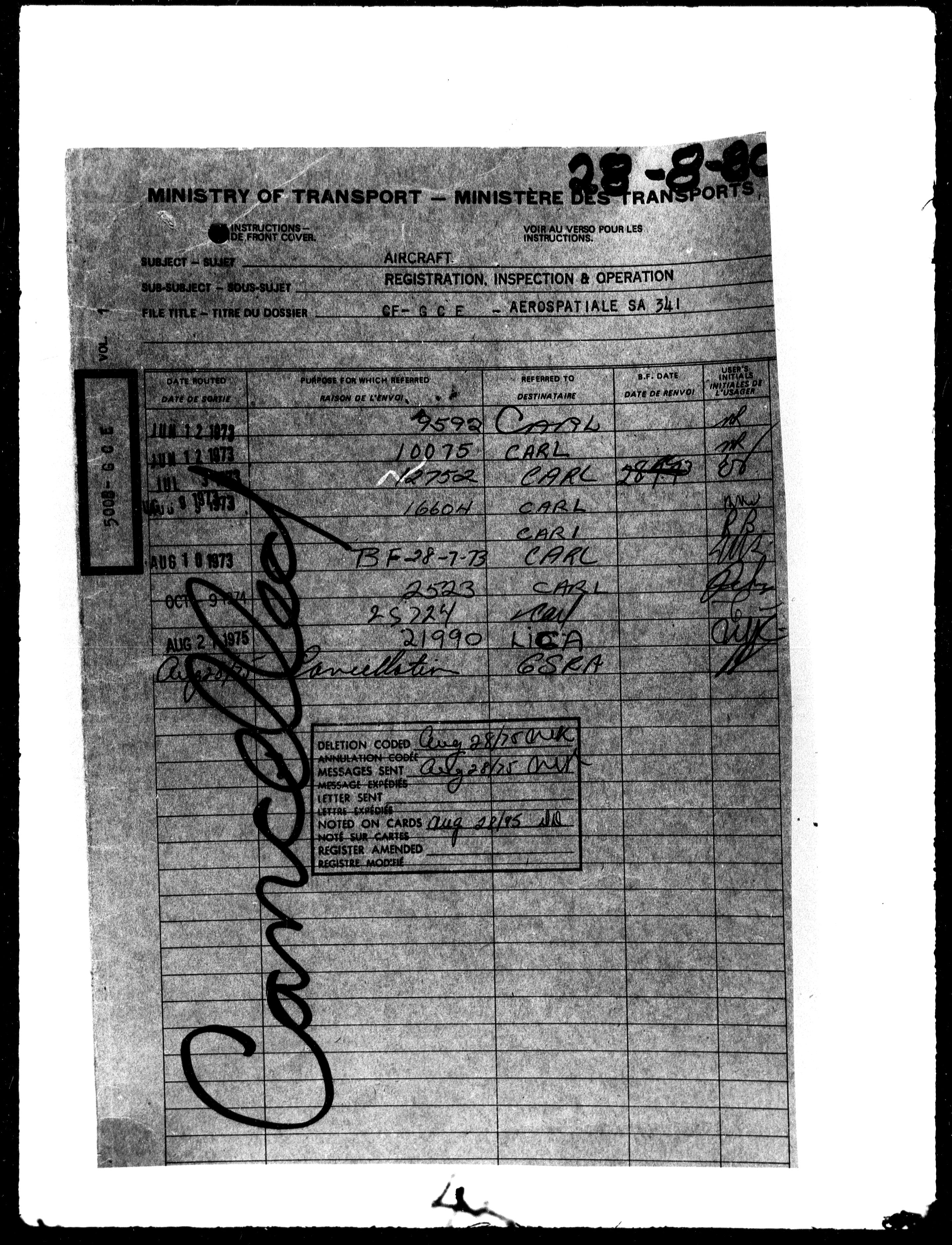 Department of Transport : Civil aircraft registration, inspection and operation files, block 5008, 1920-1986 - 7773