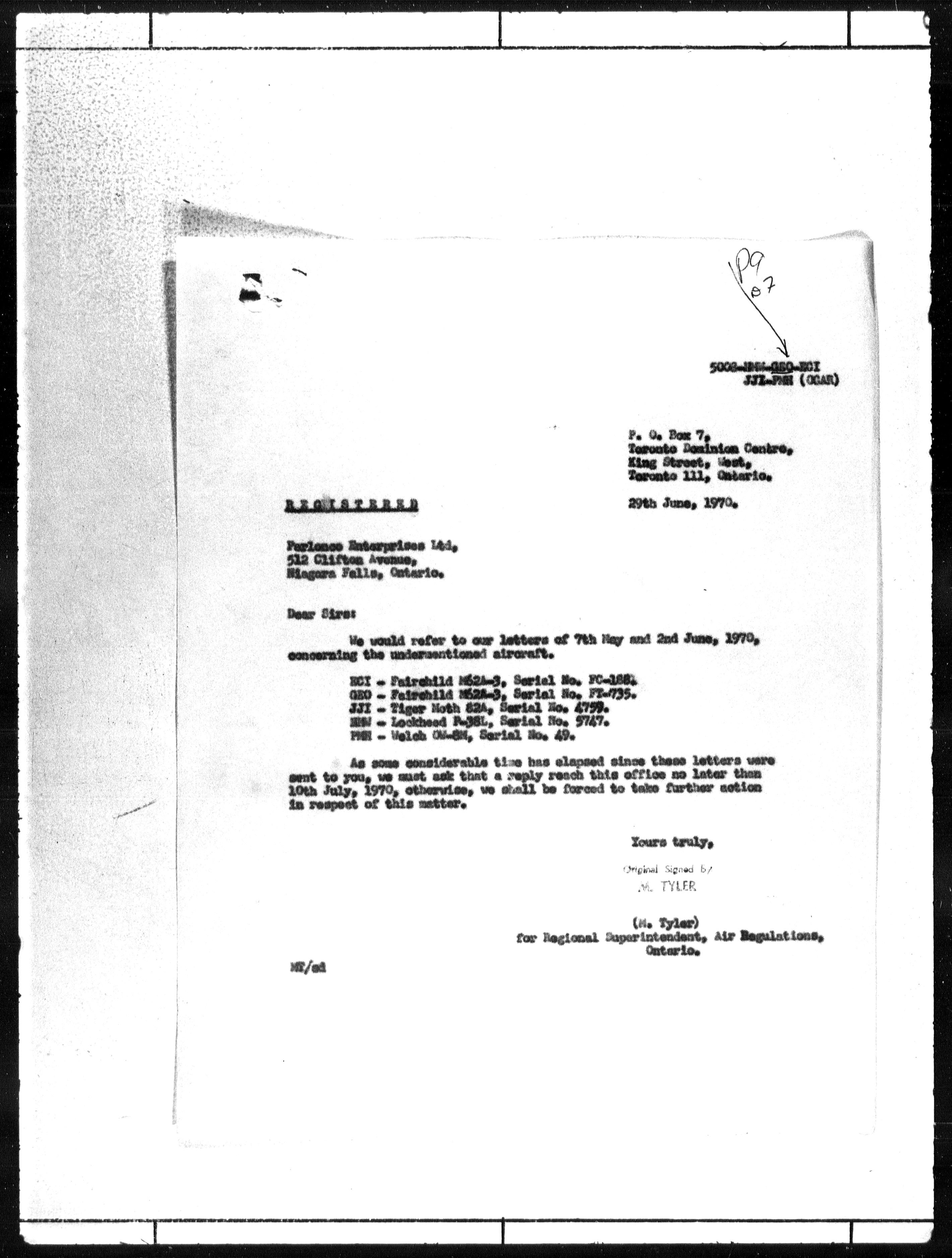 Department of Transport : Civil aircraft registration, inspection and operation files, block 5008, 1920-1986 - 7774