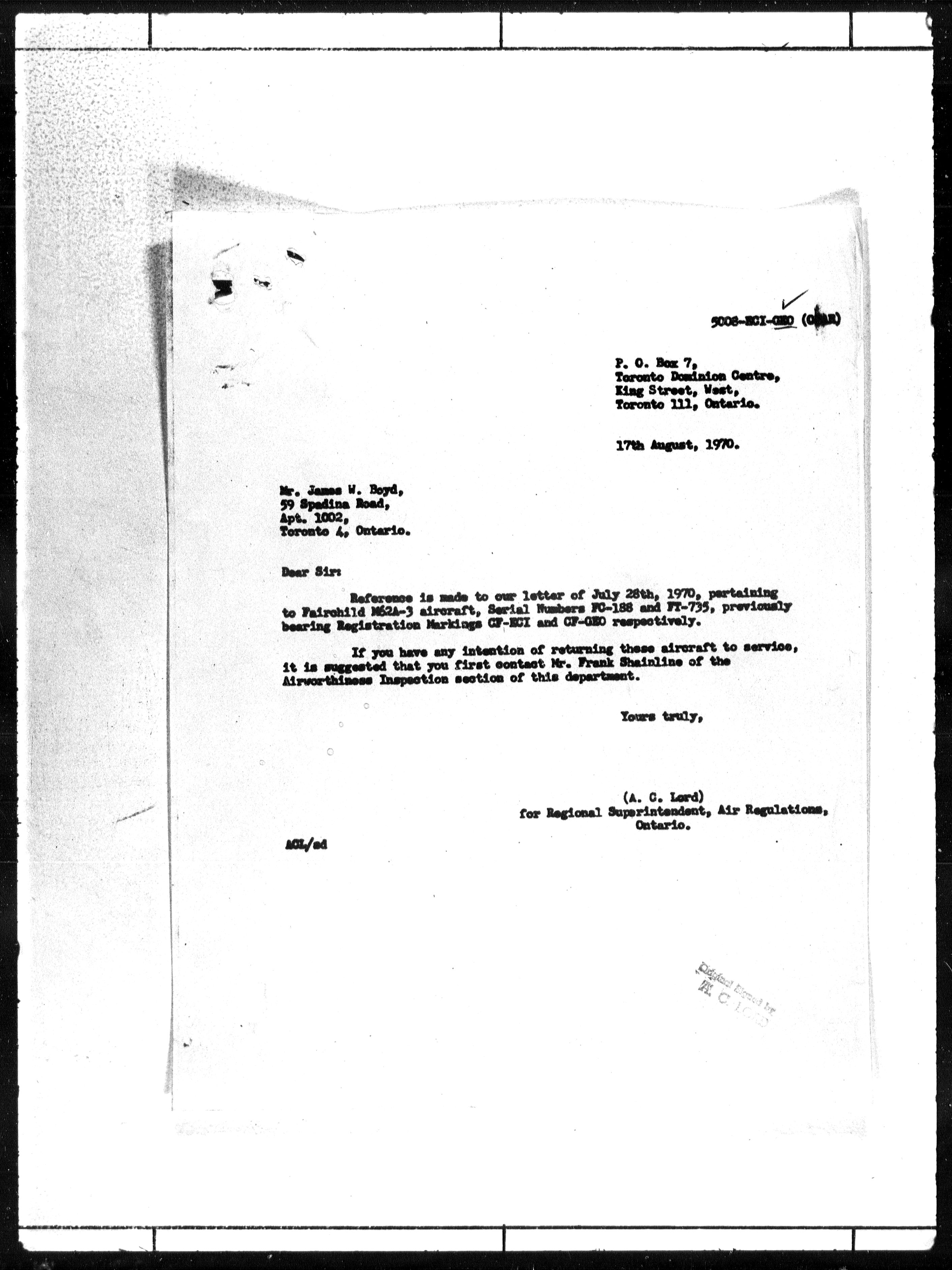 Department of Transport : Civil aircraft registration, inspection and operation files, block 5008, 1920-1986 - 7774