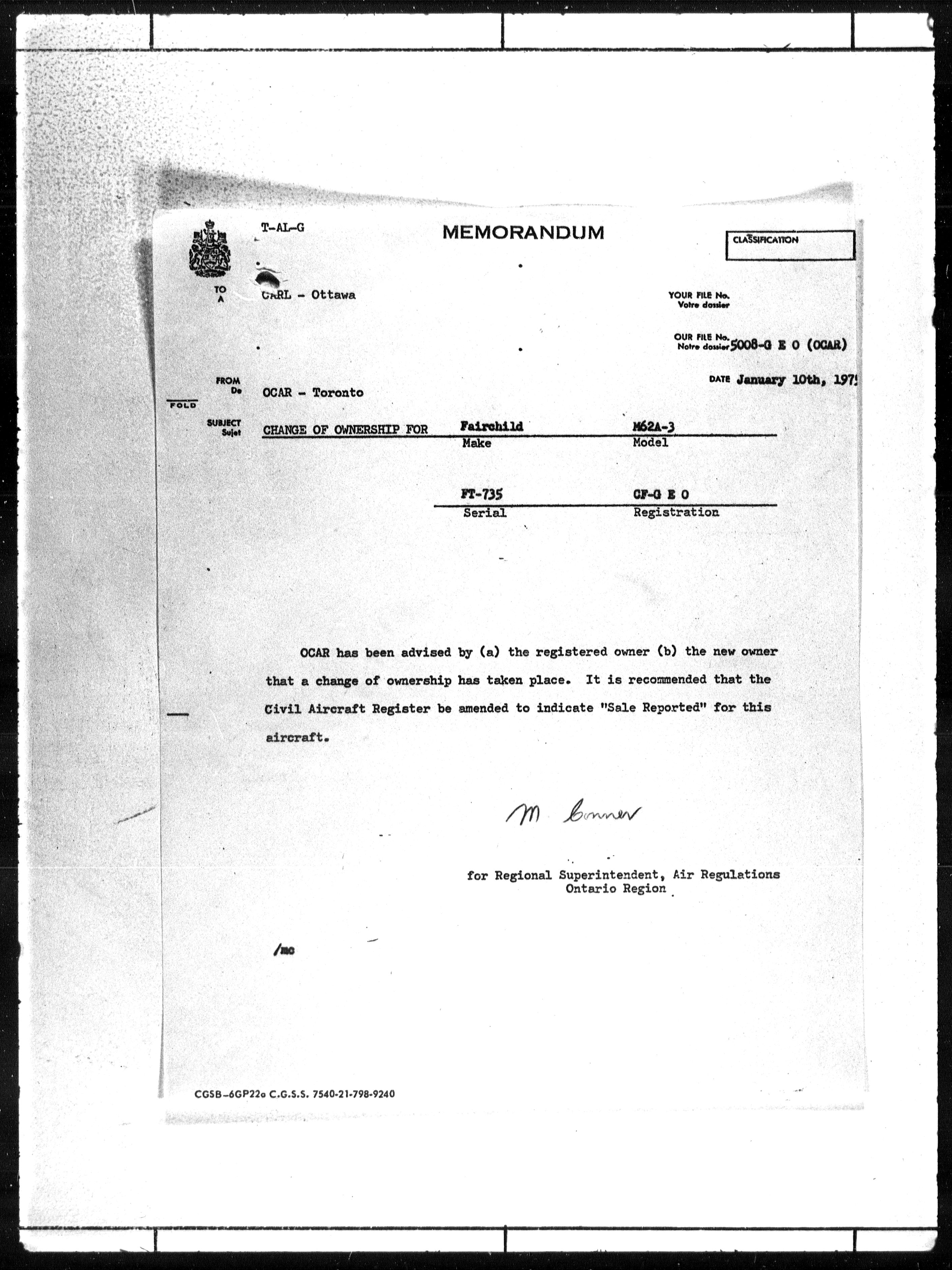 Department of Transport : Civil aircraft registration, inspection and operation files, block 5008, 1920-1986 - 7774