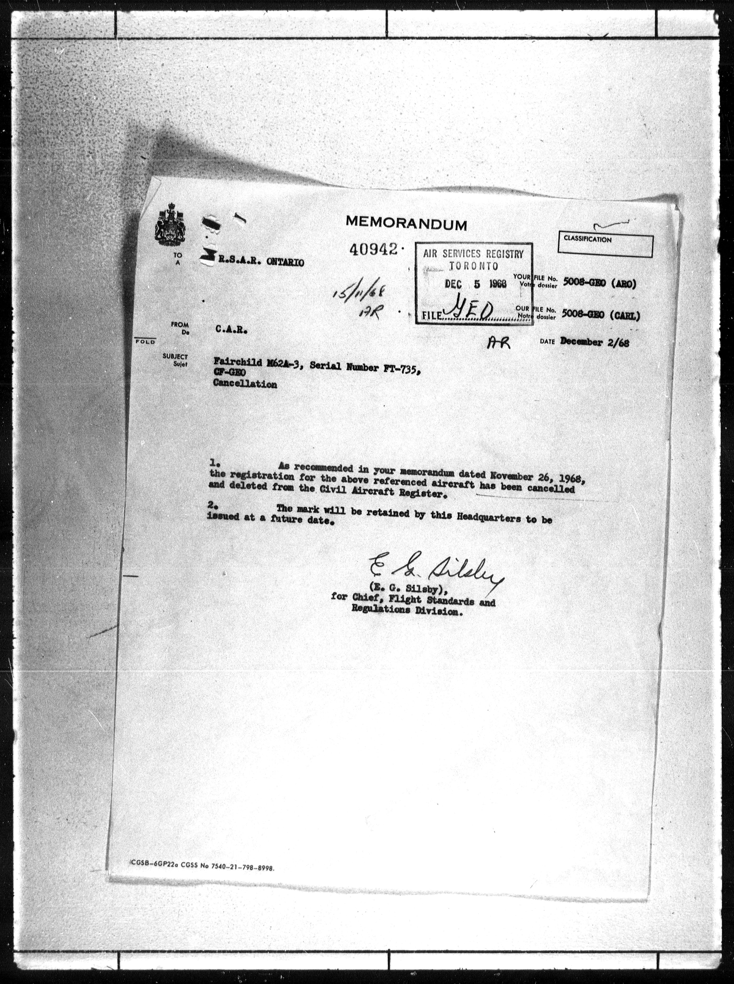 Department of Transport : Civil aircraft registration, inspection and operation files, block 5008, 1920-1986 - 7774