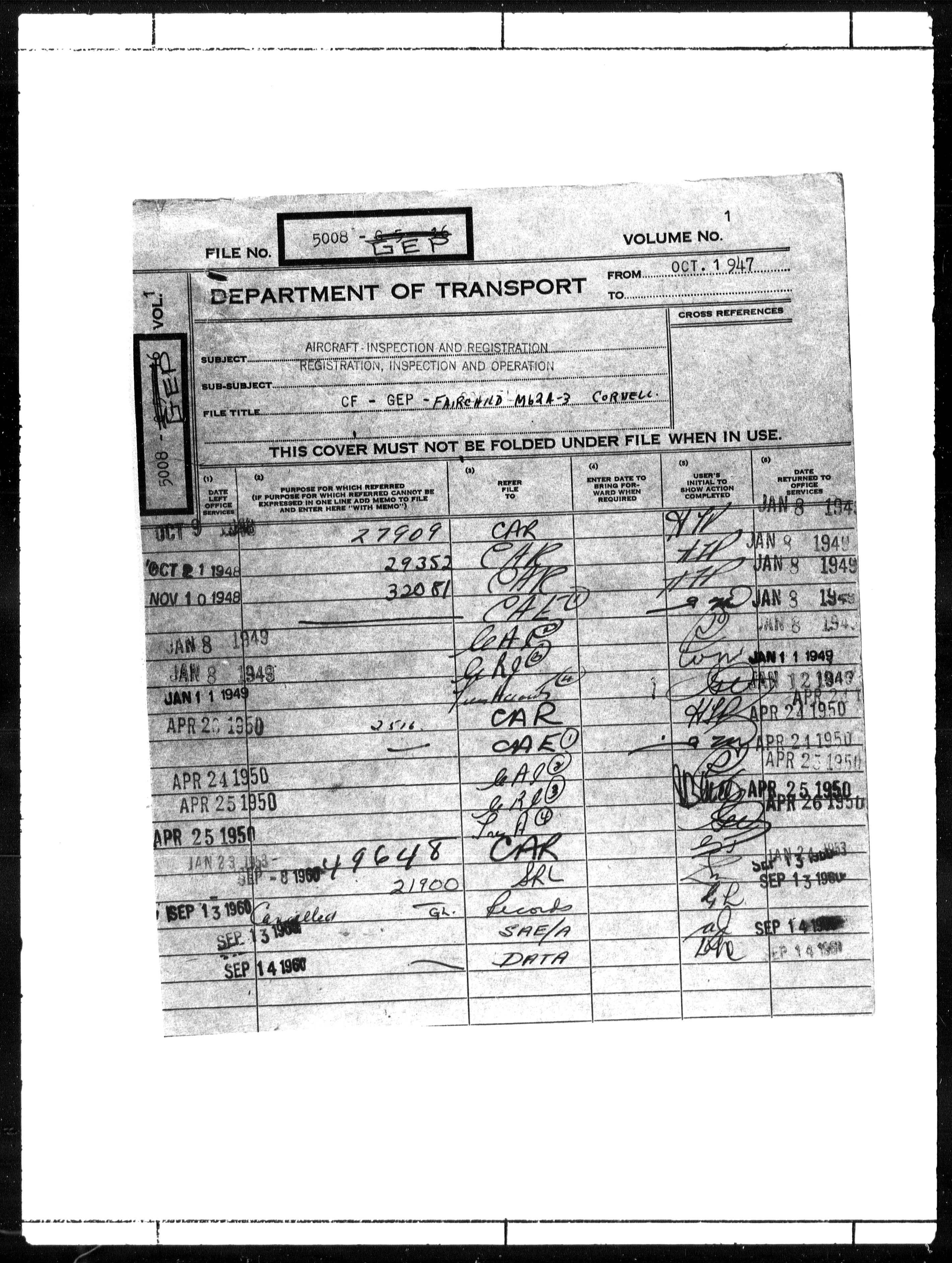 Department of Transport : Civil aircraft registration, inspection and operation files, block 5008, 1920-1986 - 7774