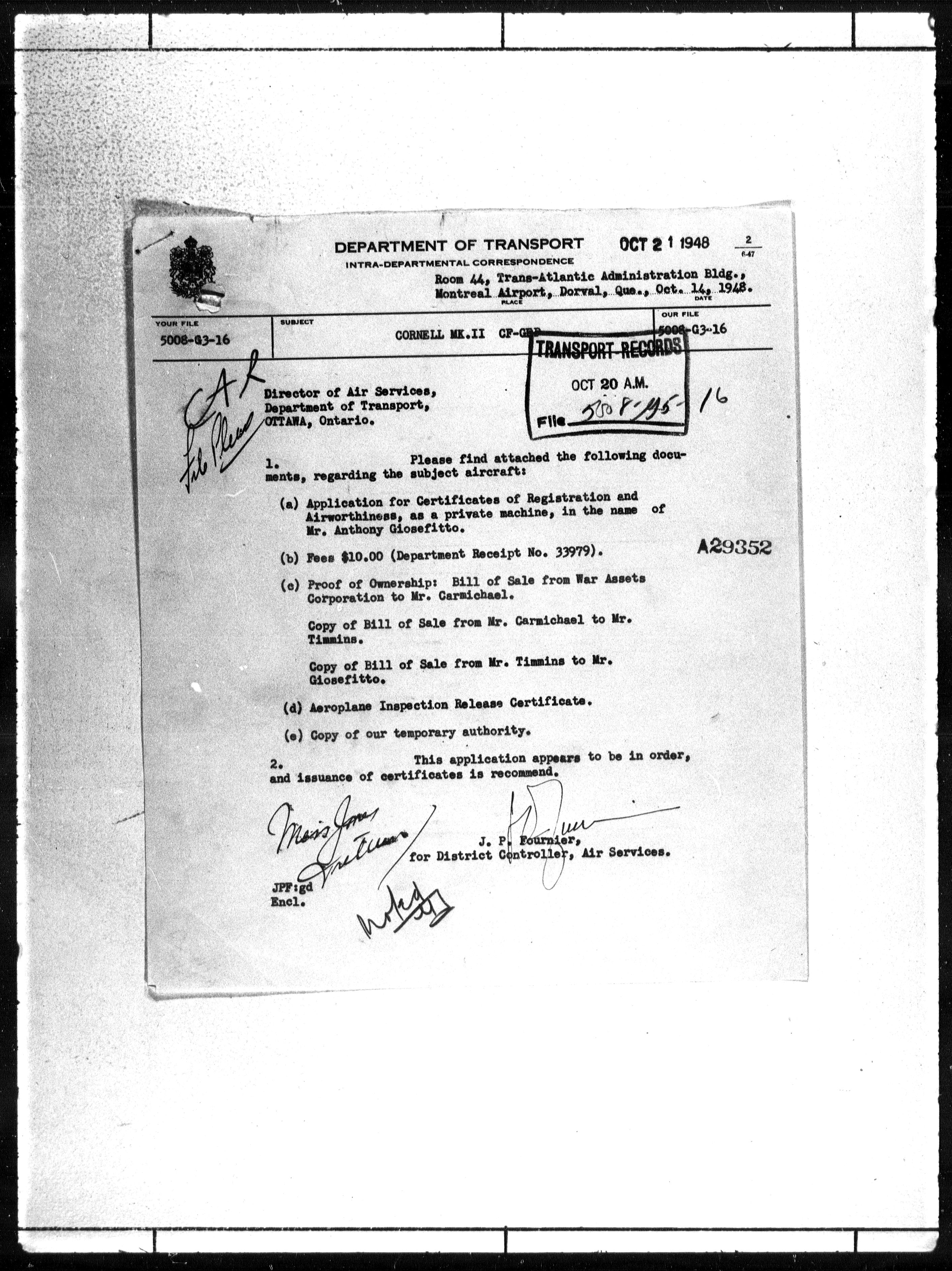Department of Transport : Civil aircraft registration, inspection and operation files, block 5008, 1920-1986 - 7774