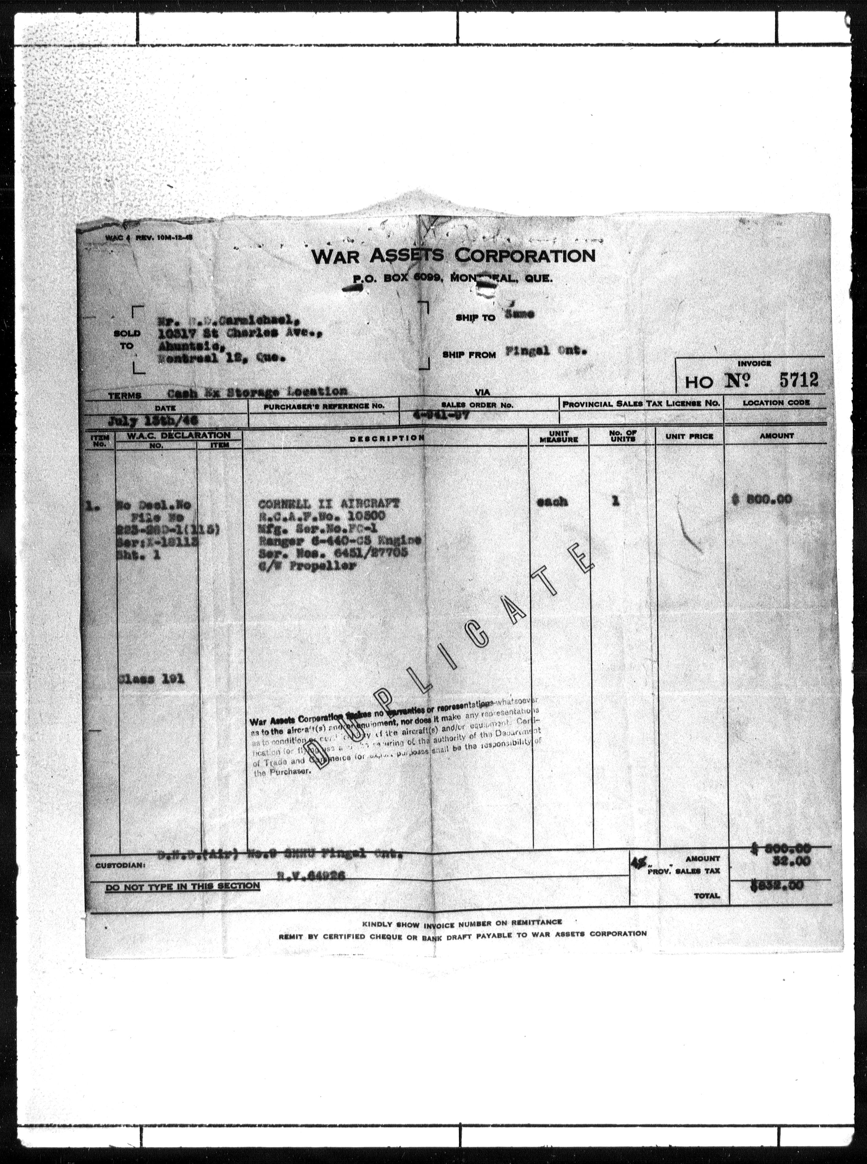 Department of Transport : Civil aircraft registration, inspection and operation files, 1920-1986 : T-7774
