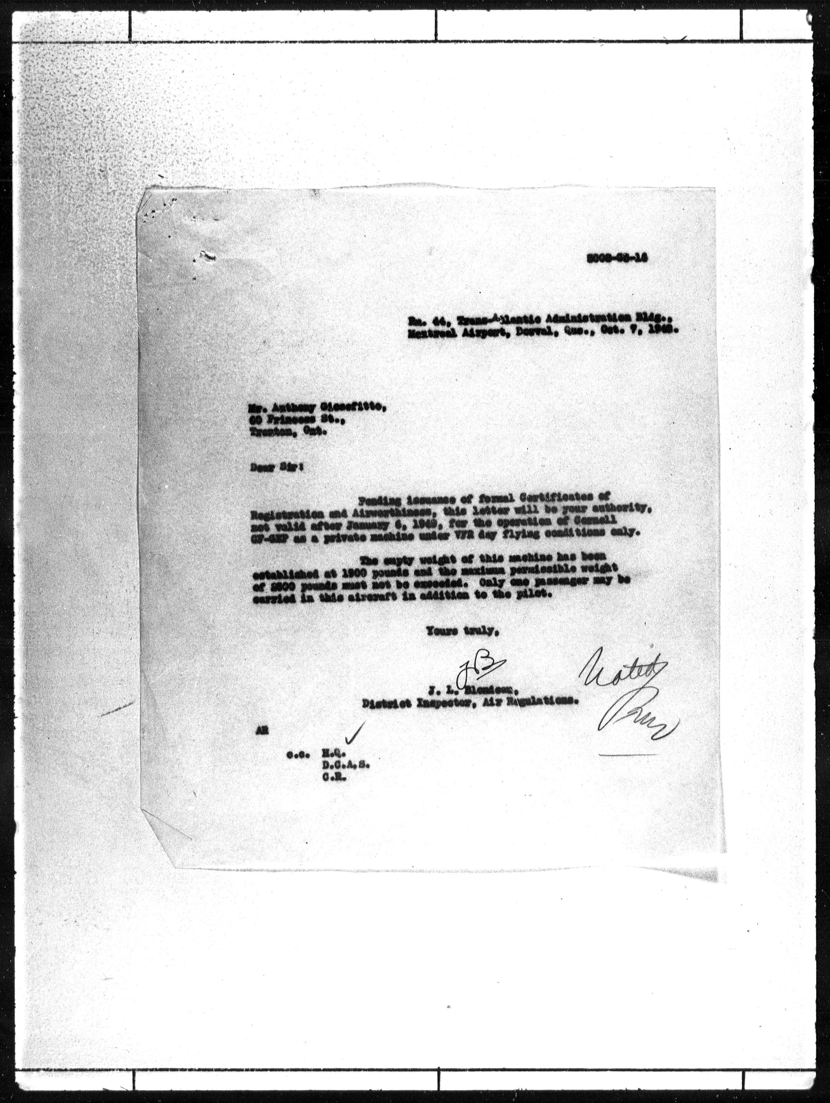 Department of Transport : Civil aircraft registration, inspection and operation files, 1920-1986 : T-7774