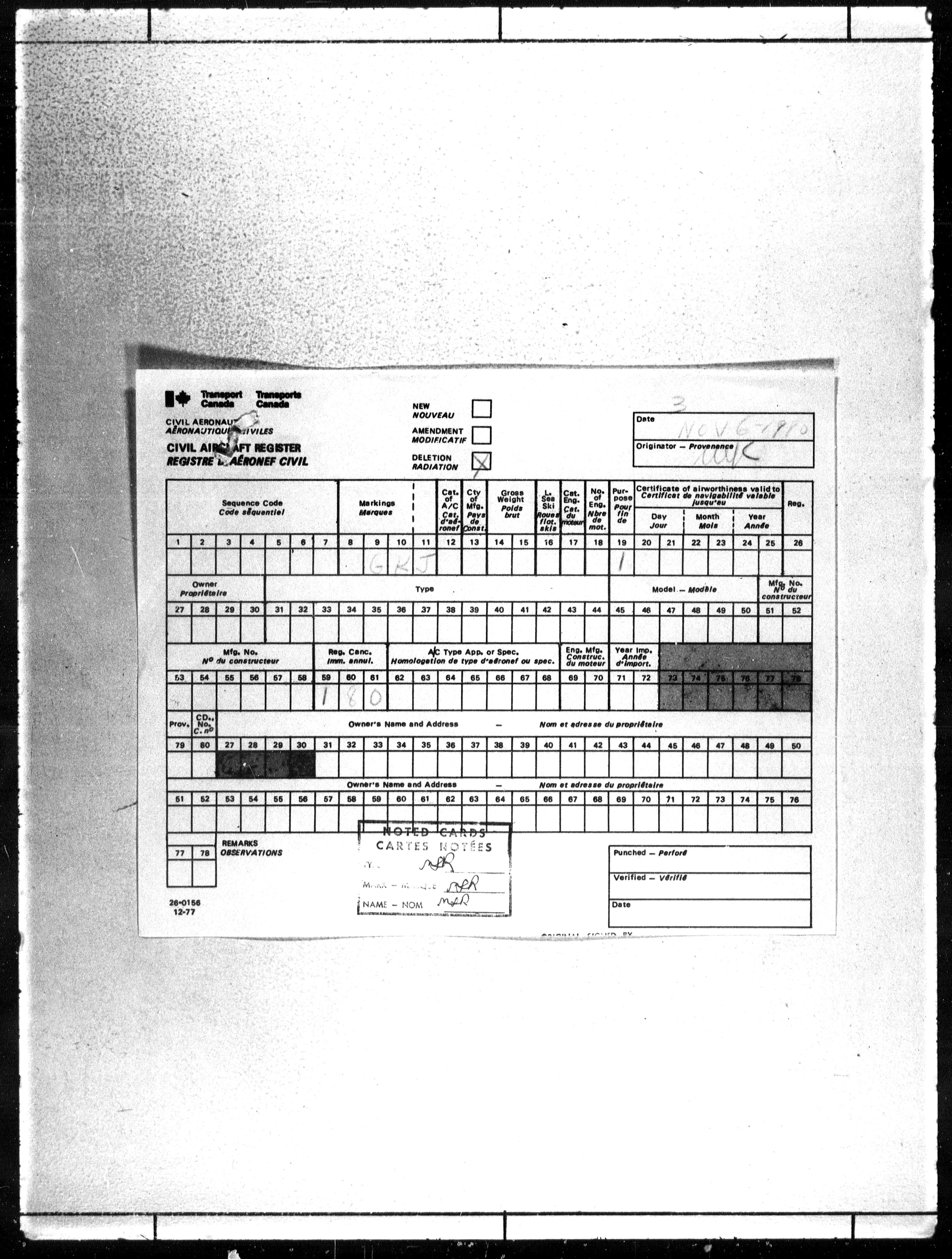 Department of Transport : Civil aircraft registration, inspection and operation files, block 5008, 1920-1986 - 7776