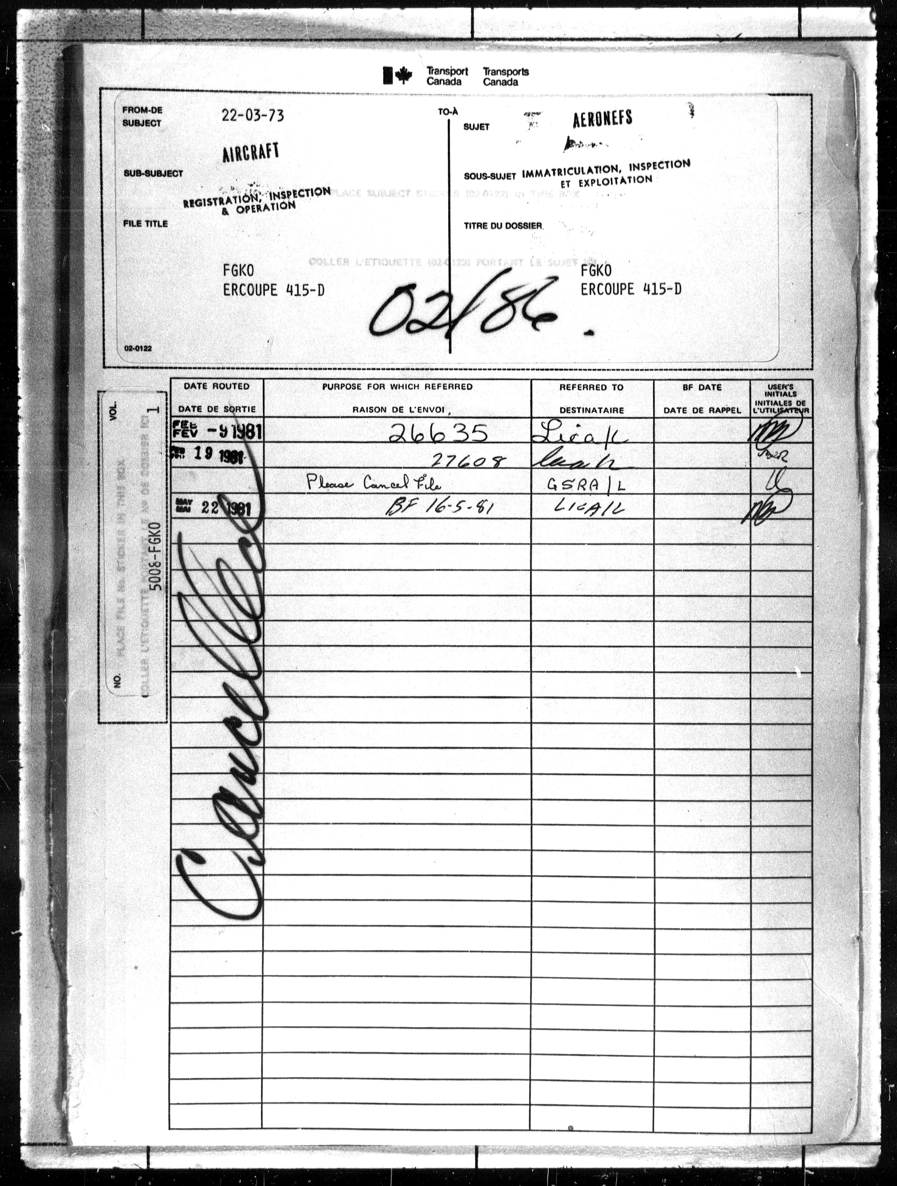 Department of Transport : Civil aircraft registration, inspection and operation files, block 5008, 1920-1986 - 7776