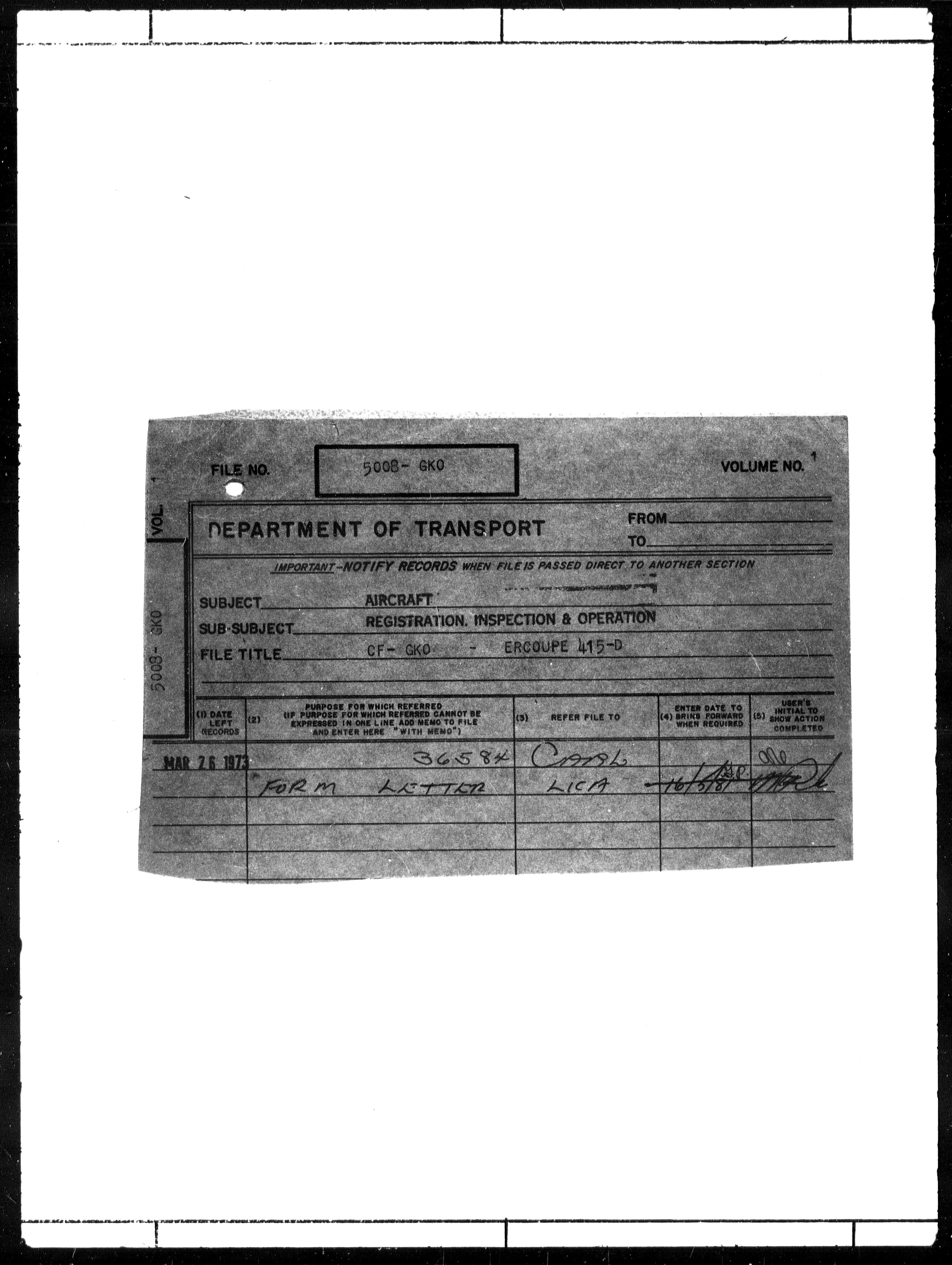 Department of Transport : Civil aircraft registration, inspection and operation files, block 5008, 1920-1986 - 7776