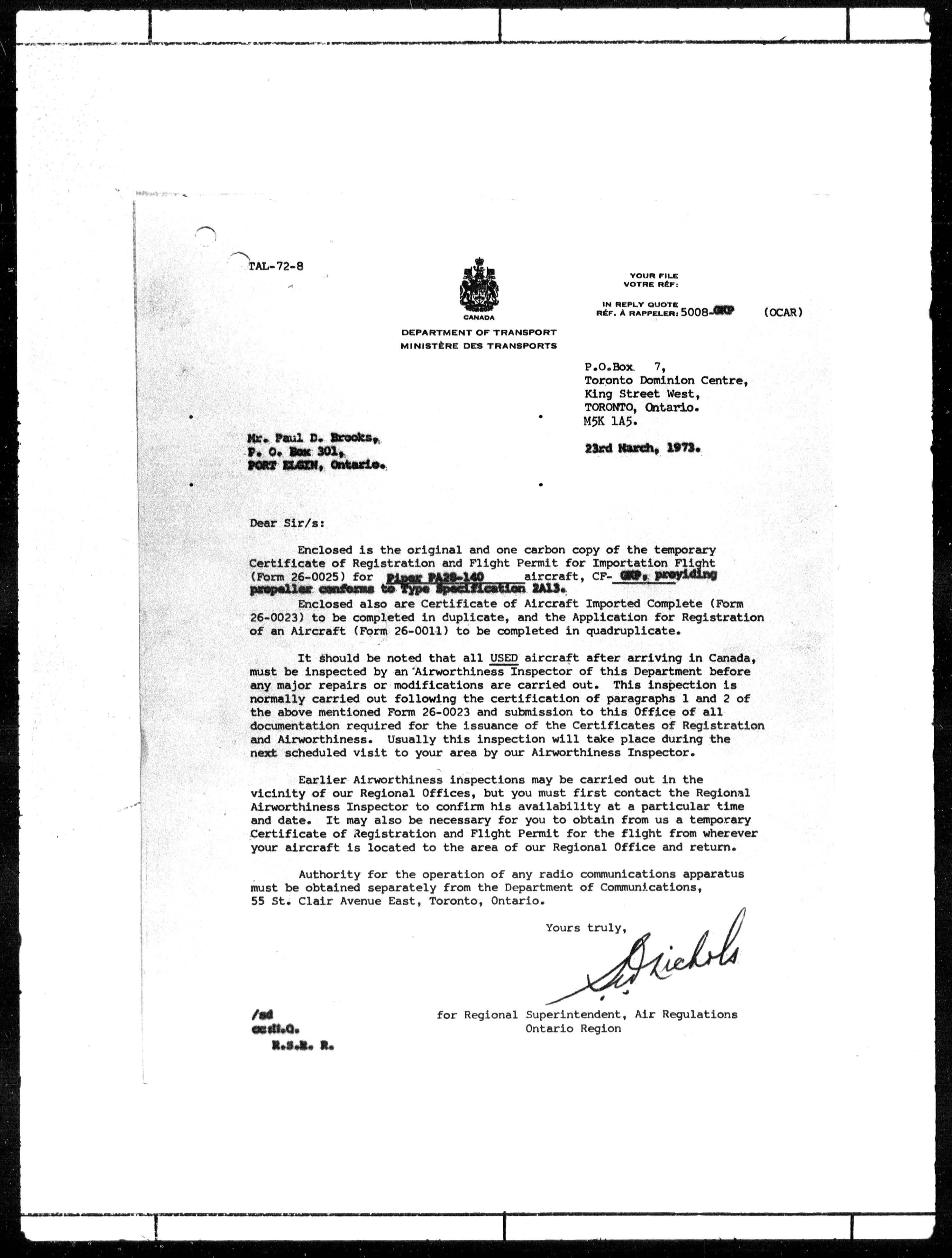 Department of Transport : Civil aircraft registration, inspection and operation files, block 5008, 1920-1986 - 7776
