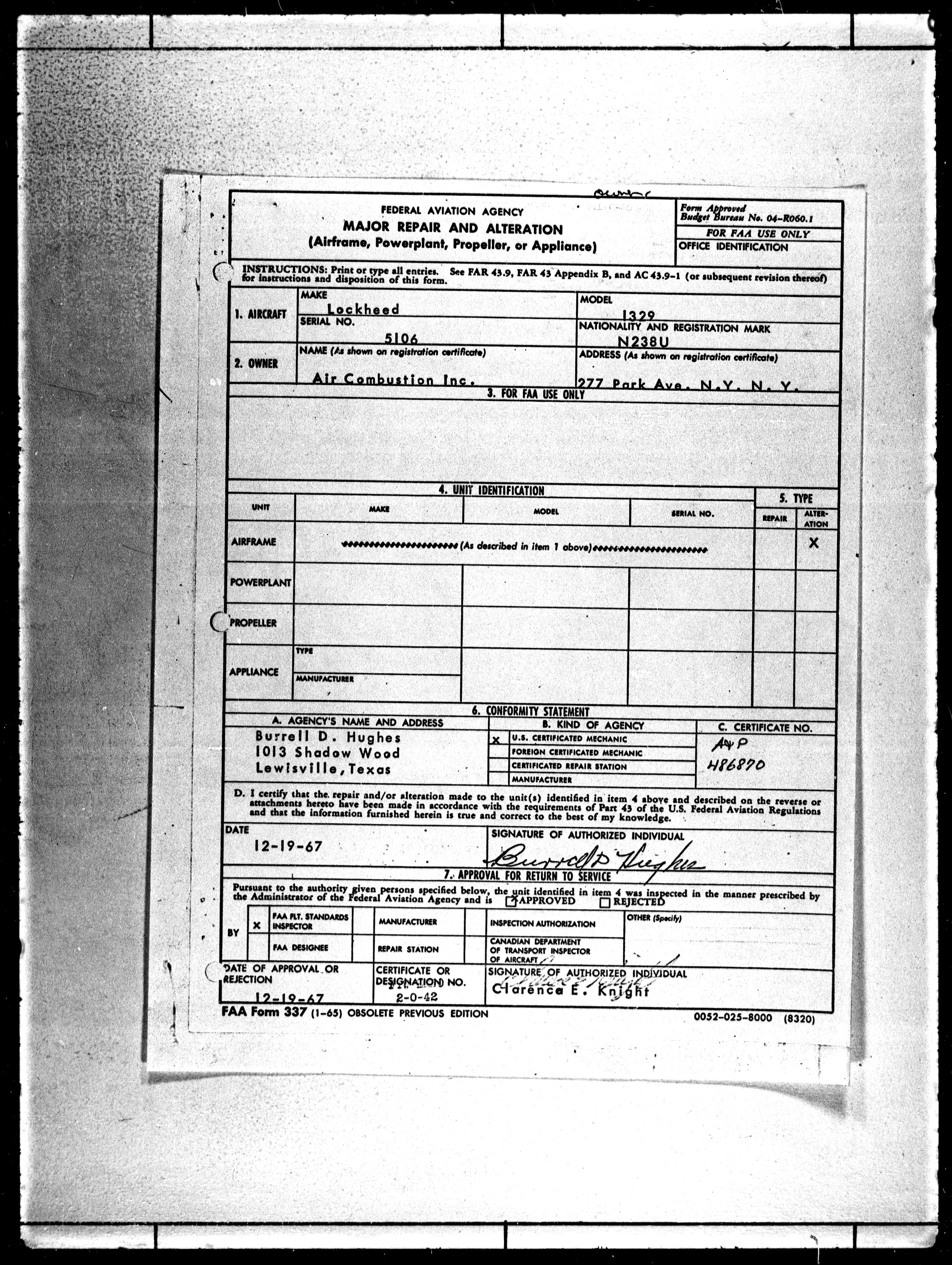 Department of Transport : Civil aircraft registration, inspection and operation files, block 5008, 1920-1986 - 7778
