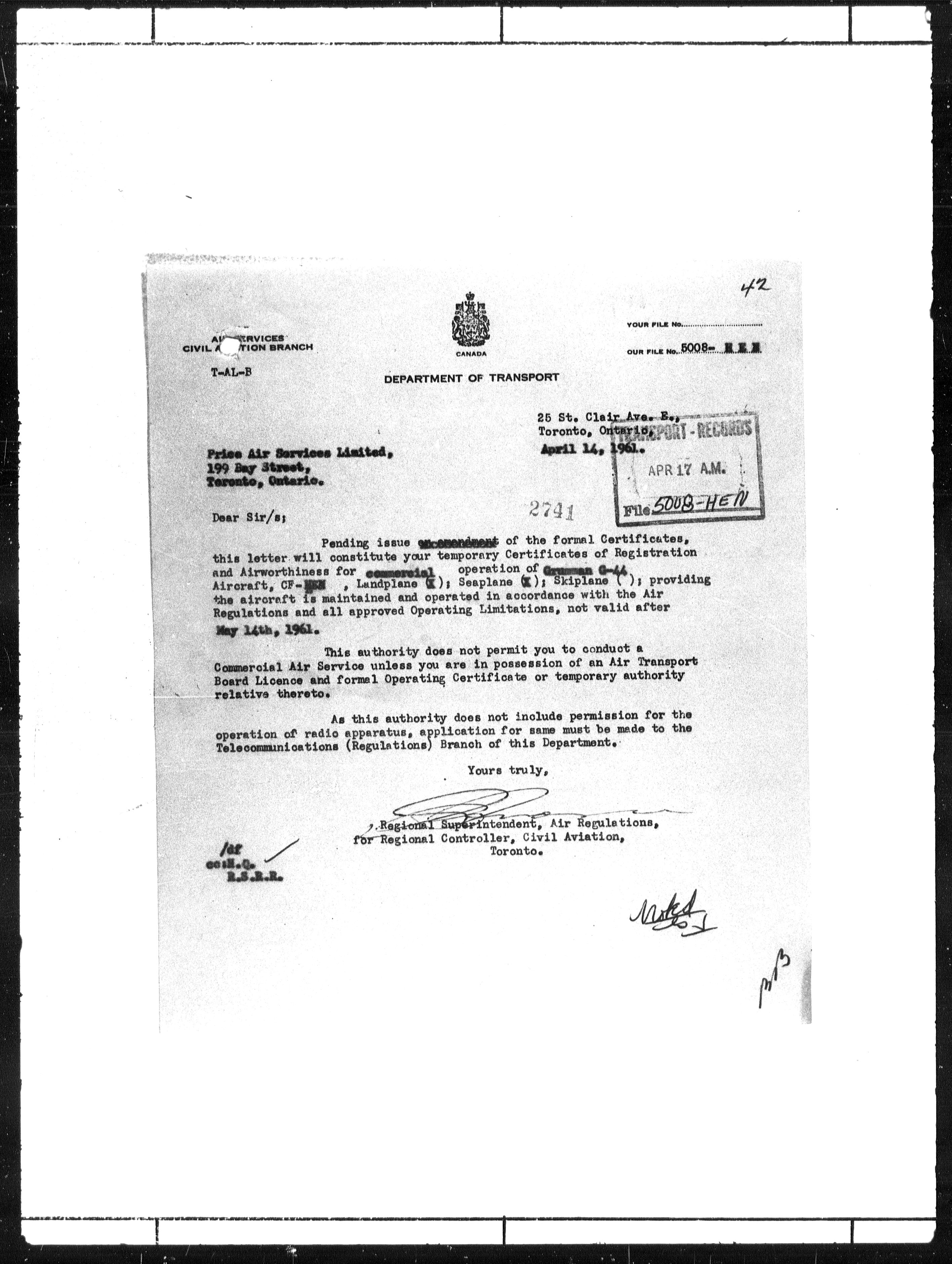 Department of Transport : Civil aircraft registration, inspection and operation files, block 5008, 1920-1986 - 7780