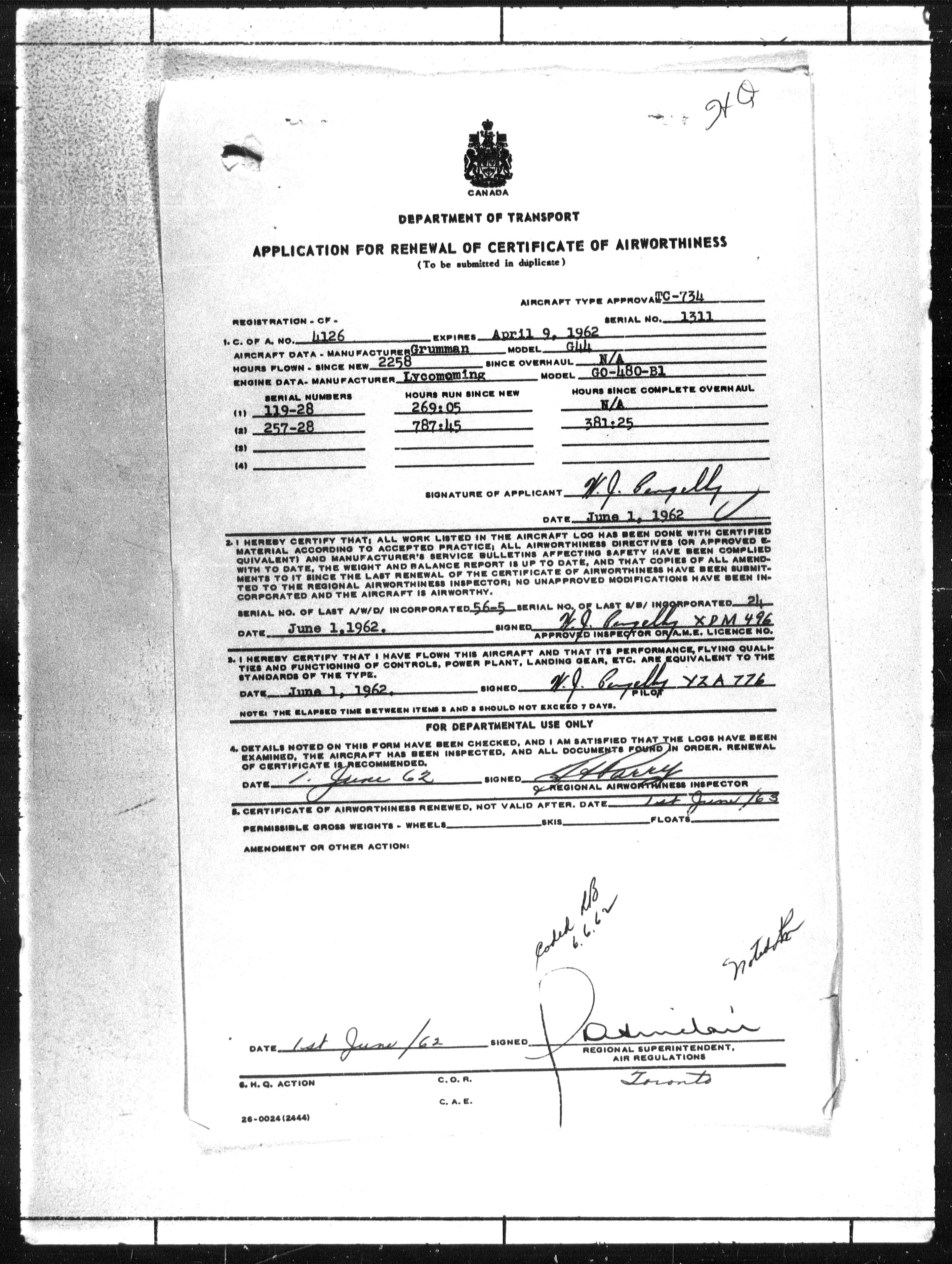Department of Transport : Civil aircraft registration, inspection and operation files, block 5008, 1920-1986 - 7780