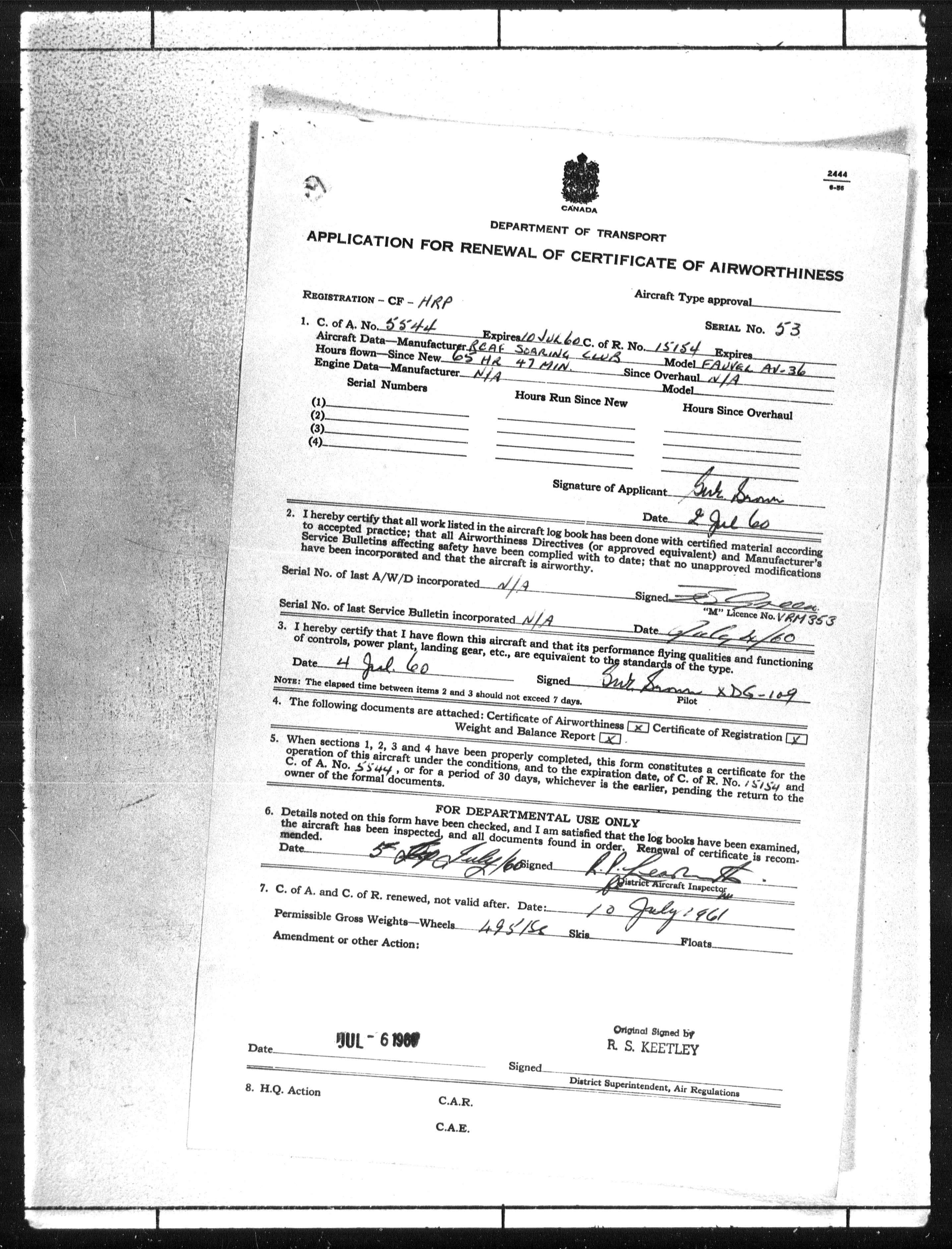 Department of Transport : Civil aircraft registration, inspection and operation files, block 5008, 1920-1986 - 7782