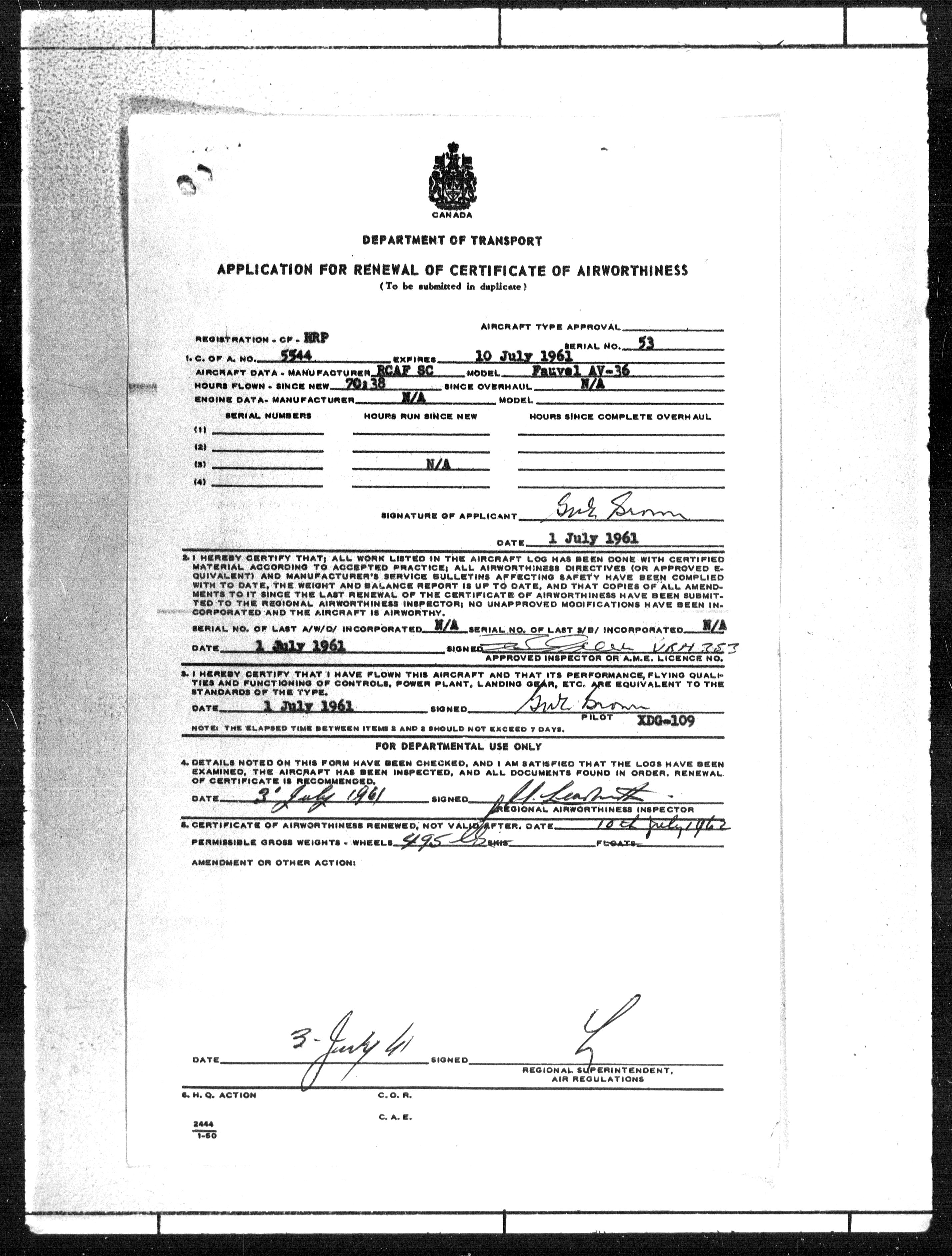 Department of Transport : Civil aircraft registration, inspection and operation files, block 5008, 1920-1986 - 7782