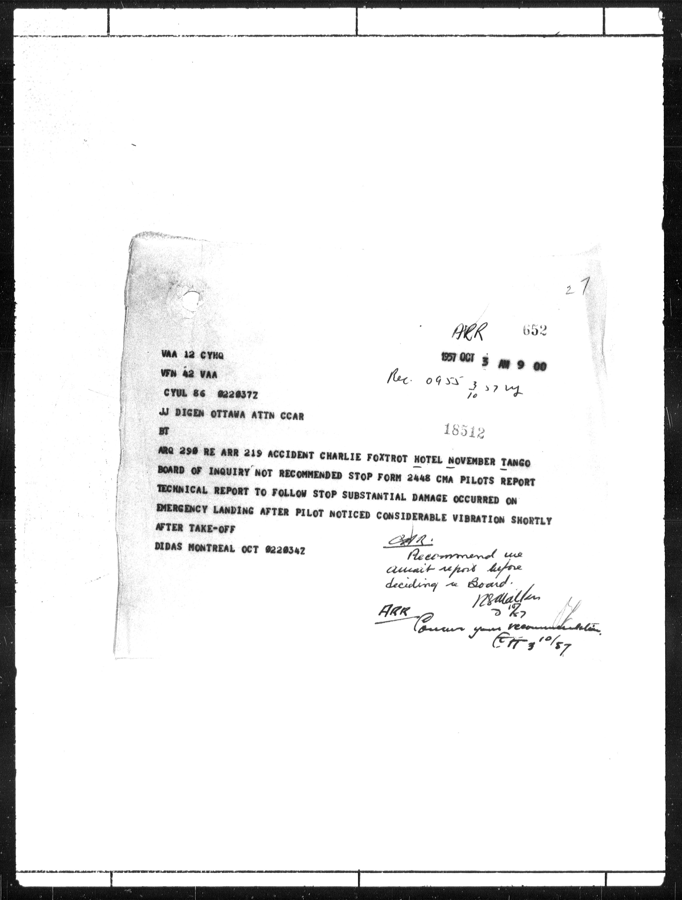 Department of Transport : Civil aircraft registration, inspection and operation files, block 5008, 1920-1986 - 7782