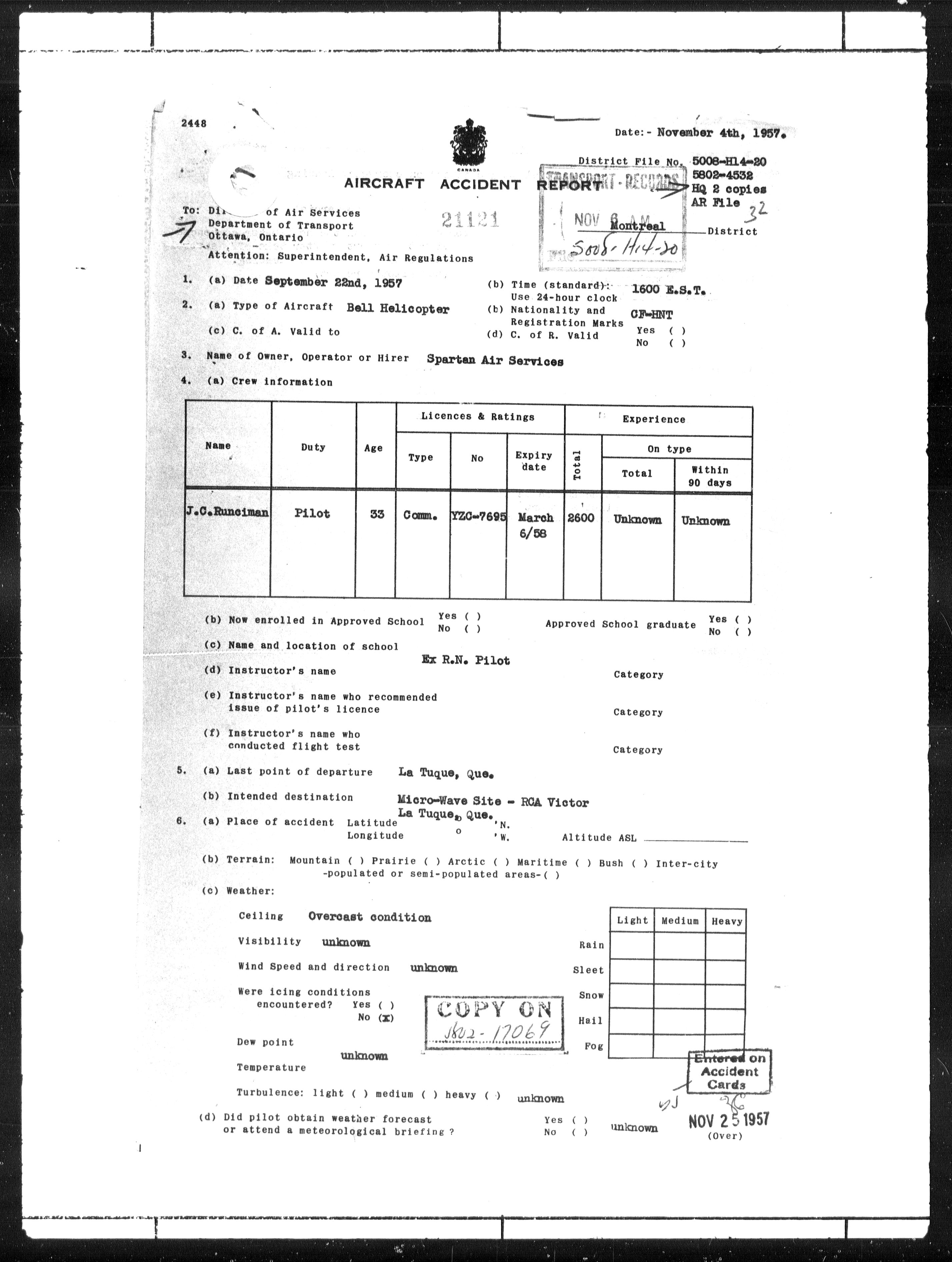 Department of Transport : Civil aircraft registration, inspection and operation files, block 5008, 1920-1986 - 7782