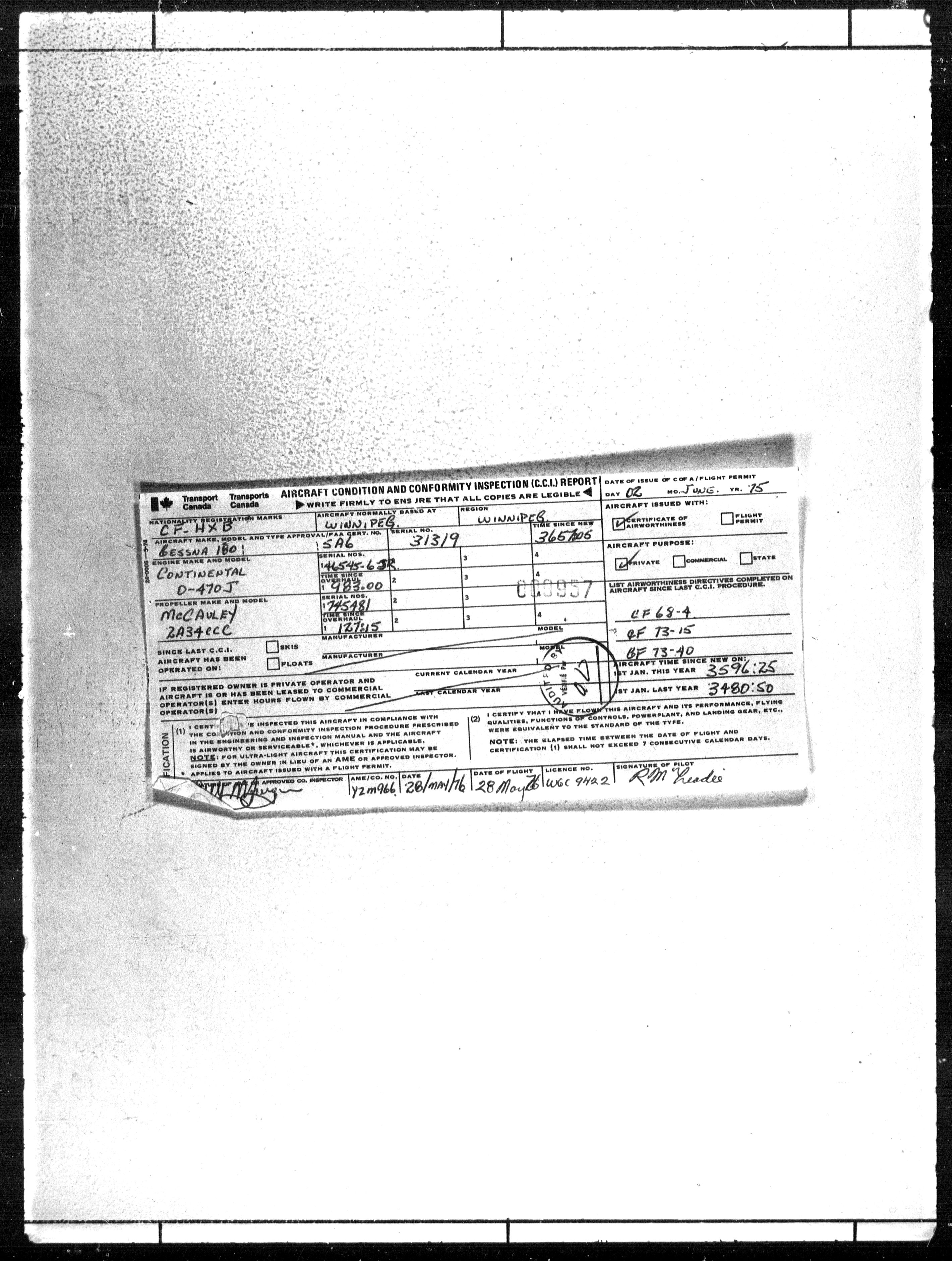 Department of Transport : Civil aircraft registration, inspection and operation files, block 5008, 1920-1986 - 7783