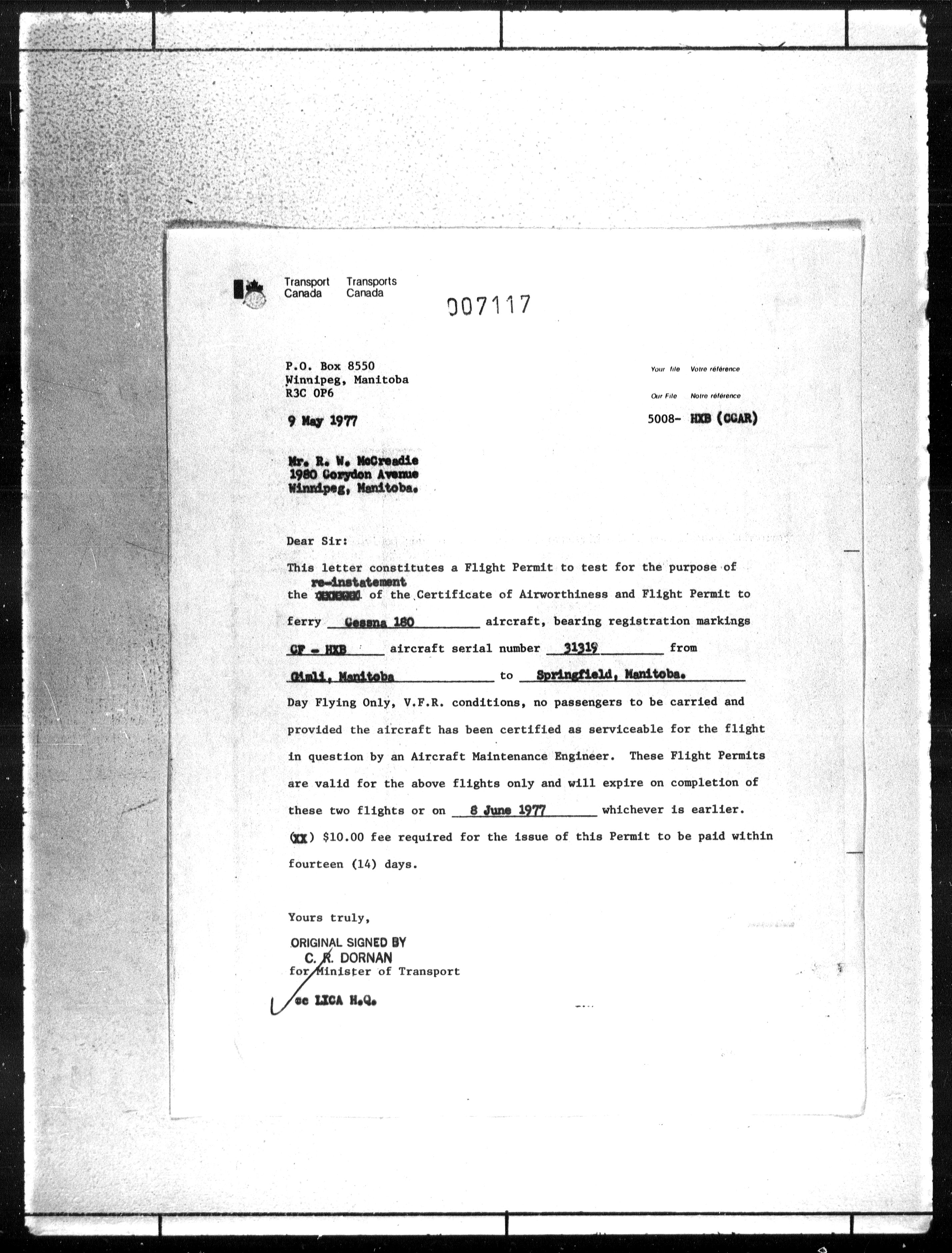 Department of Transport : Civil aircraft registration, inspection and operation files, block 5008, 1920-1986 - 7783